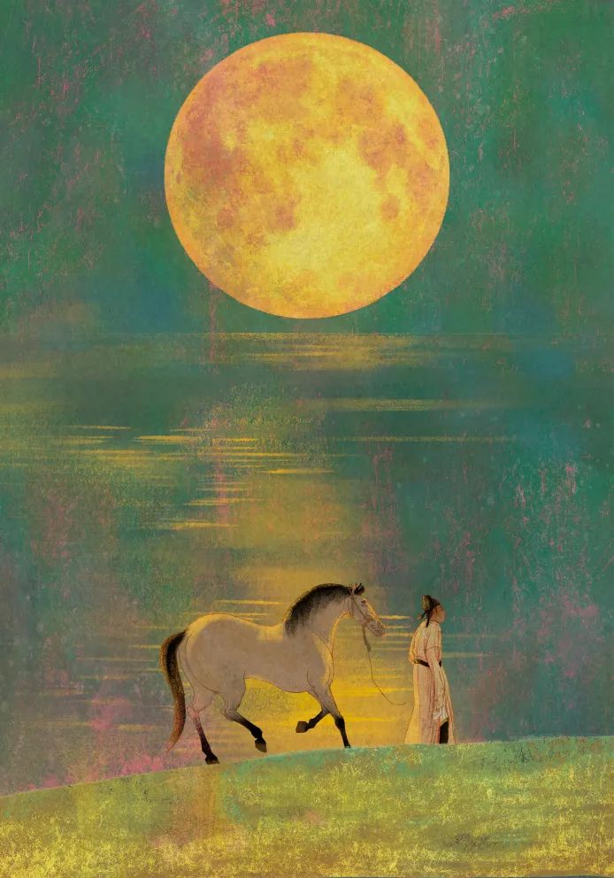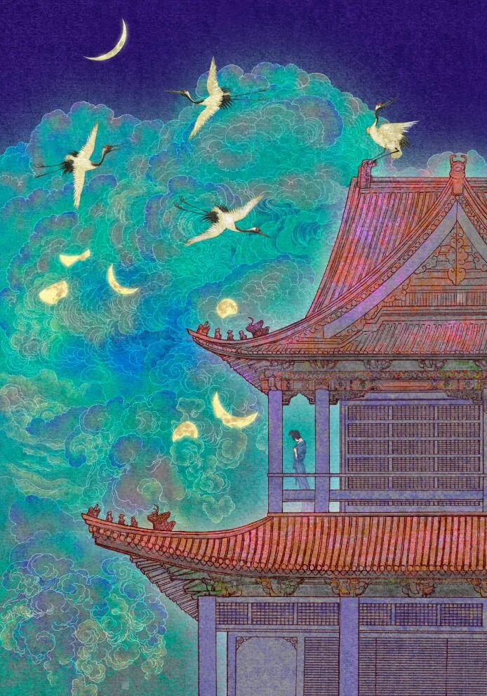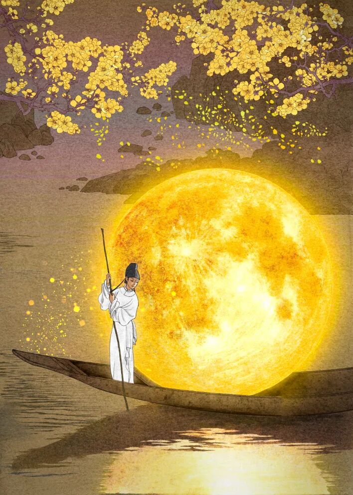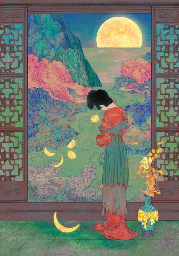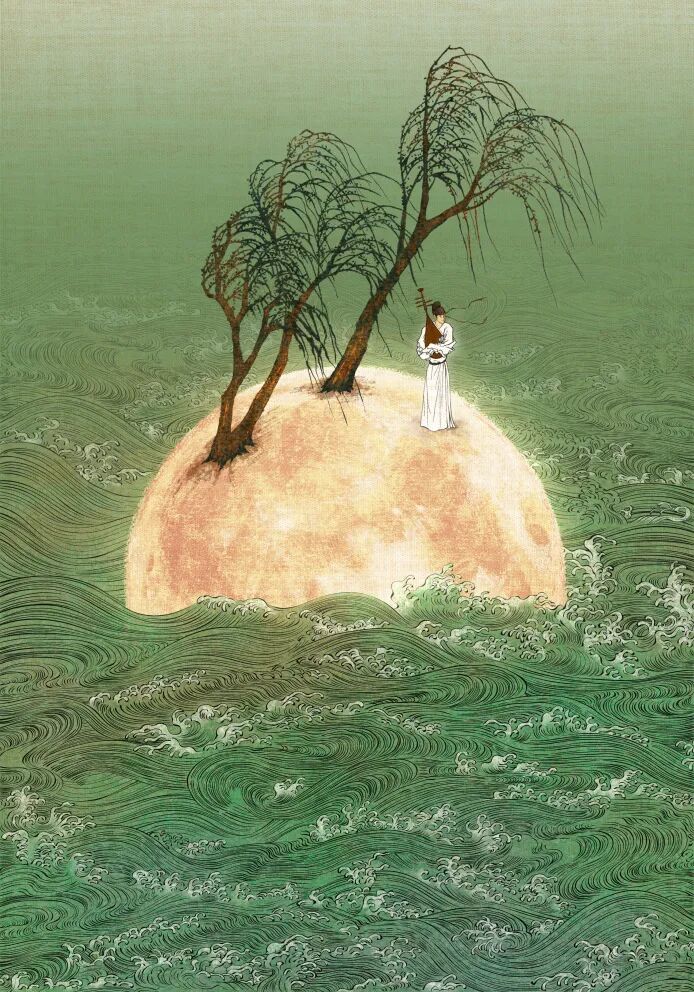 不同时空的人有着不同的身份、在做不同的事情,有着不同的喜怒哀乐,但都在望着同一个月亮。正如诗中所写“人生代代无穷已,江月年年望相似”。