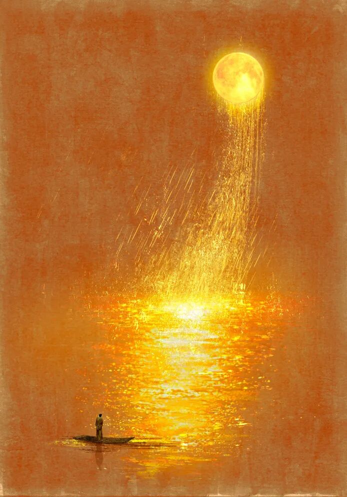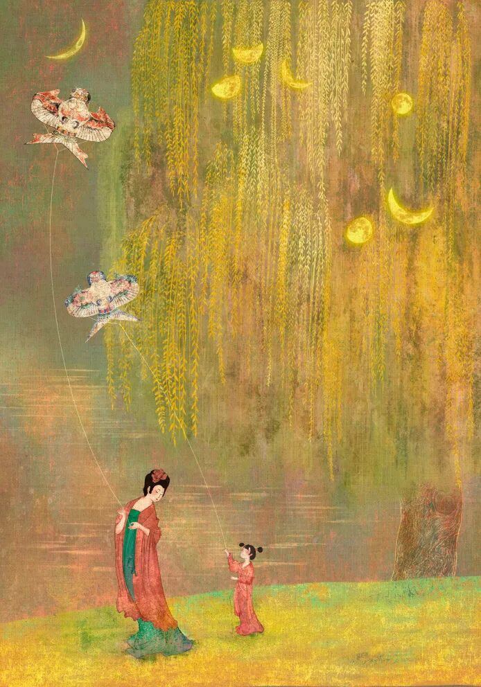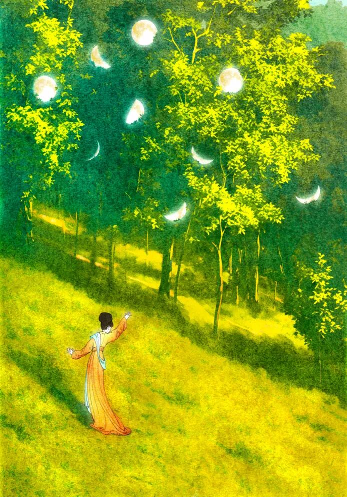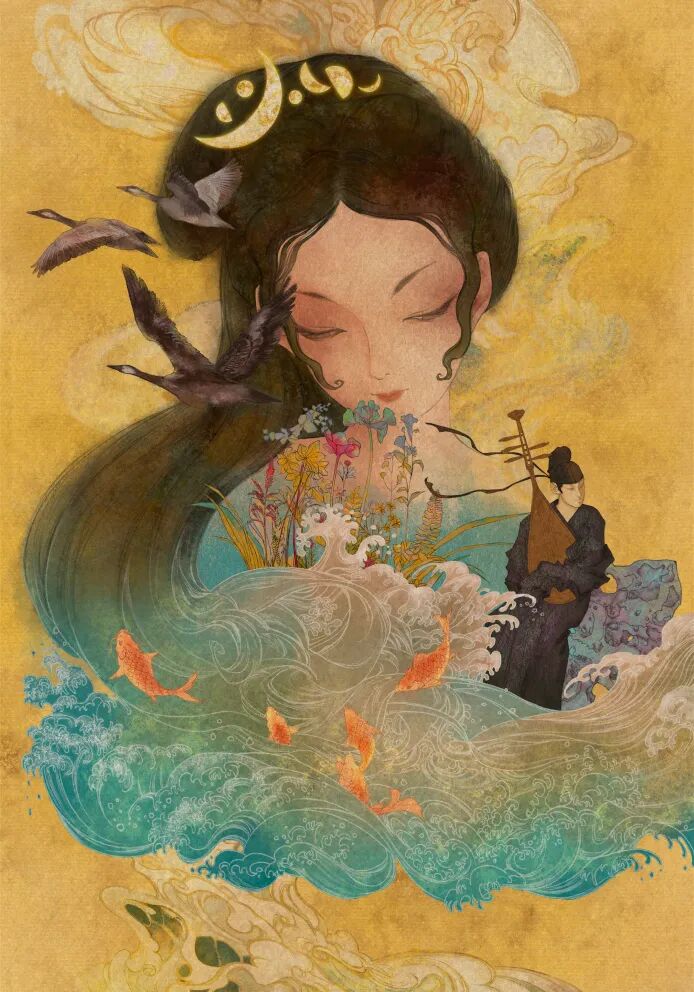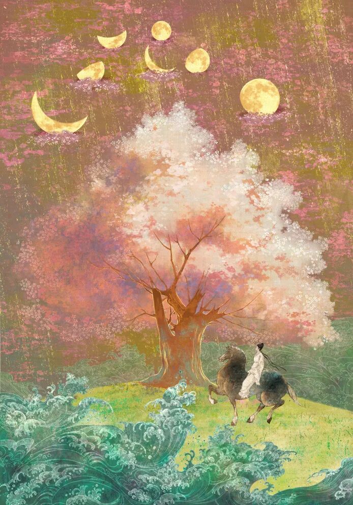 不同时空的人有着不同的身份、在做不同的事情,有着不同的喜怒哀乐,但都在望着同一个月亮。正如诗中所写“人生代代无穷已,江月年年望相似”。
