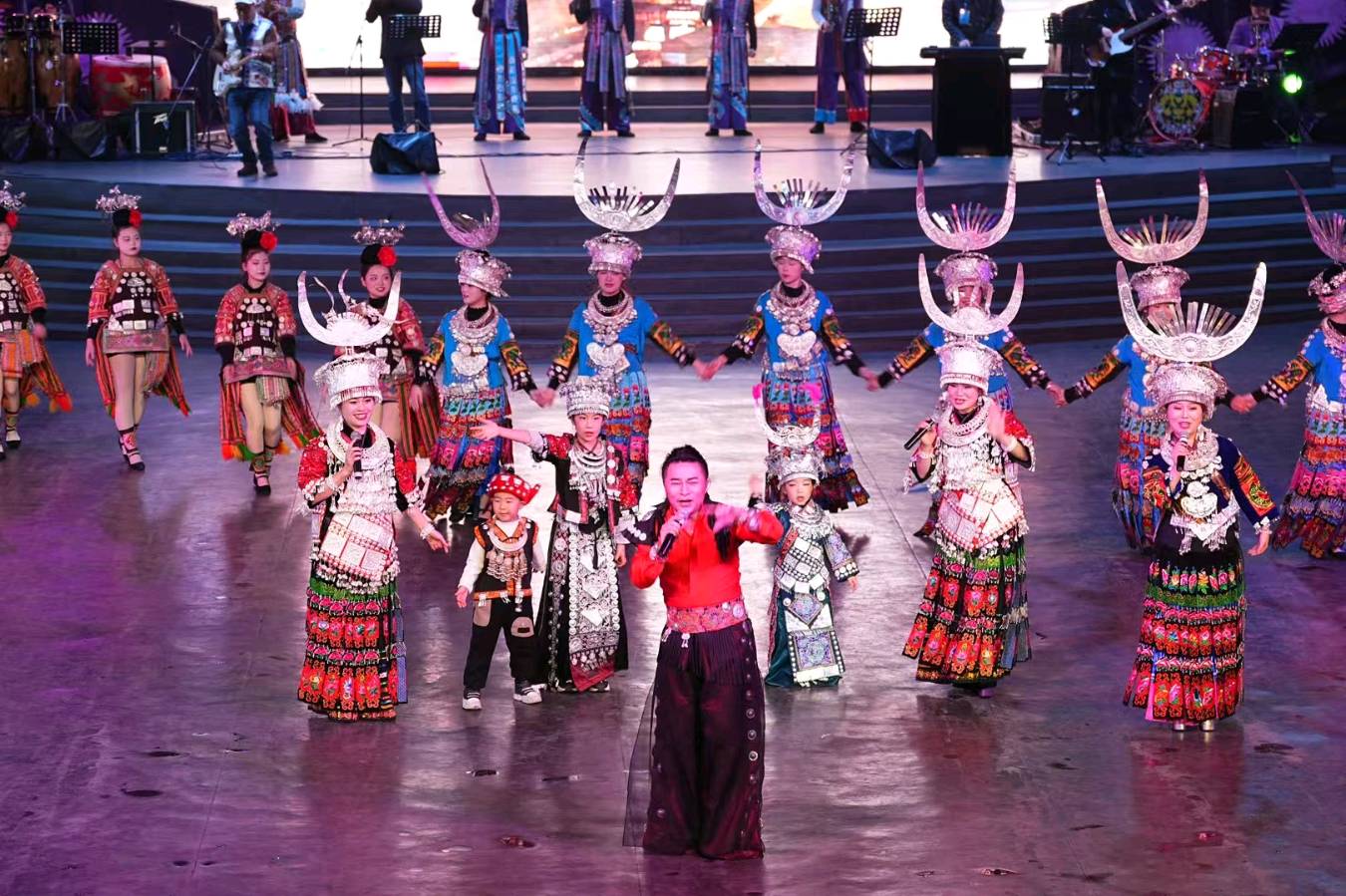 舞台上,除了蝶当久的深情演唱,苗族传统舞蹈表演同样吸睛。舞者们身着华丽精美的苗族服饰,舞步轻盈灵动,手中的银饰随着动作叮当作响,与蝶当久的歌声相互呼应,共同编织出一幅绚丽的苗族风情图。