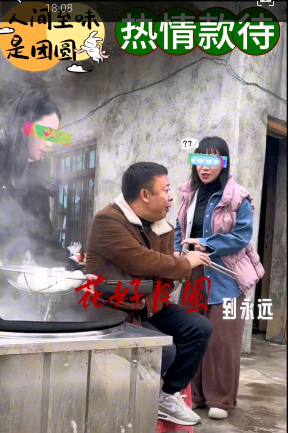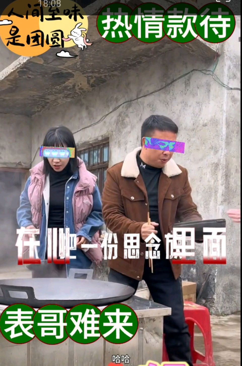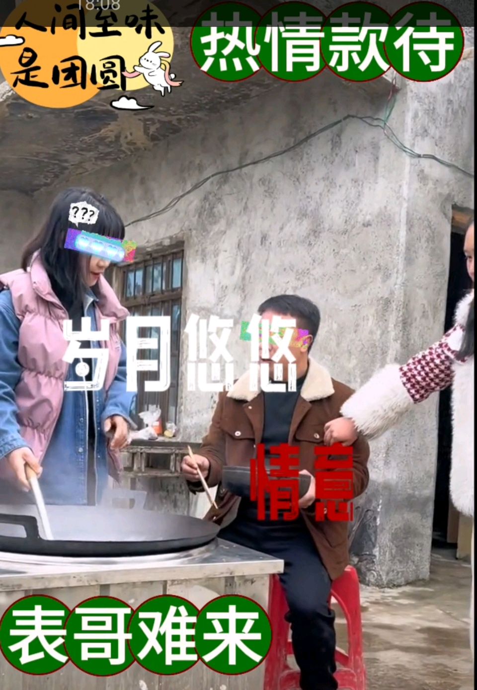 今天,不知是哪股春风吹来一小点?表哥多年不见,突然之间来到表妹家大门前:左手提着饮料,右手向大家打招呼走进表妹家里边:十五的月亮十六圆,今天我们又相见,表妹是不是不愿接见?