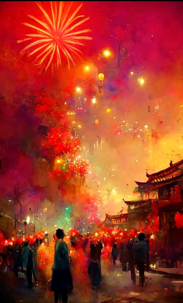 蛇年元夕花灯耀,街巷涌人潮。烟花璀璨,笙歌沸彻,月挂林梢。