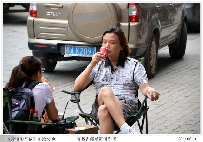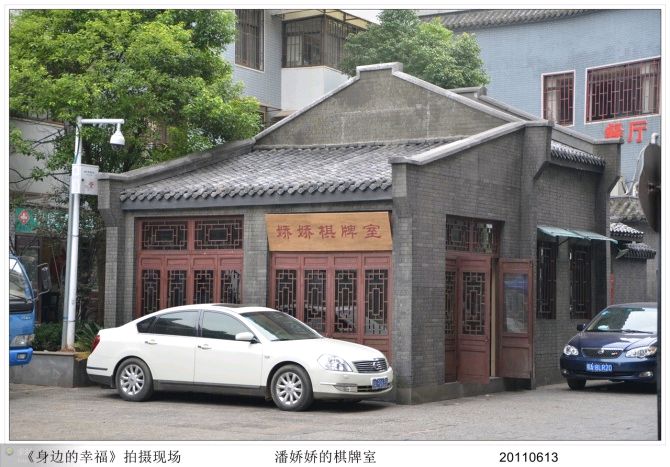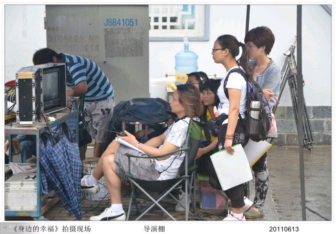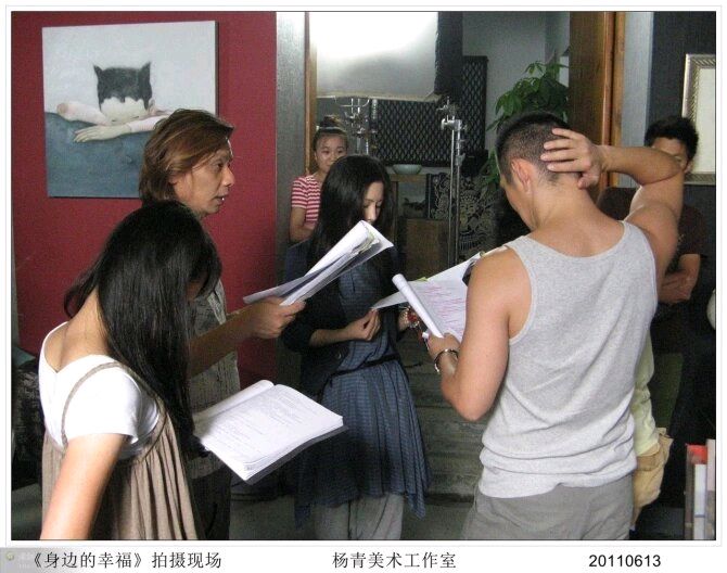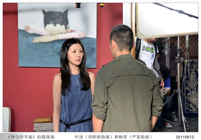 这是一部讲述发生在昙华林的故事的二十八集电视连续剧《身边的幸福》,我在第十七集里与杨青(严宽饰)、叶冰(刘梓妍饰)配了一段戏,扮演一位购画的客人。虽然我的戏不多,但是,在现场可以近距离的欣赏演员们的表演并拍摄多幅剧照和现场花絮,收获还是很大的……
