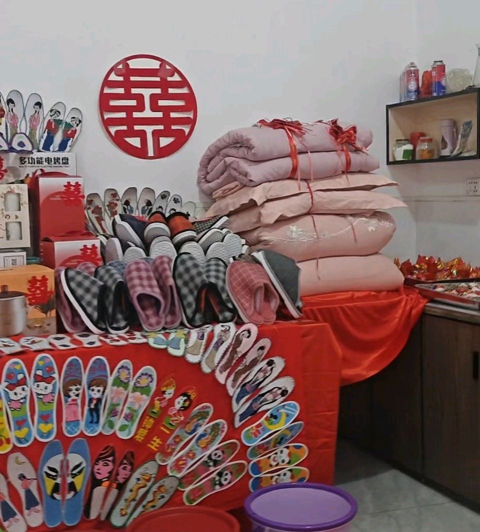 李家婚礼的筹备做得稳稳当当,房里房外人来人往,厨房里的厨师相当的匆忙,构成了一幅紧张又温暖的景象,出嫁前这天凌晨两点钟零两分闹钟一响,婚礼服务店就梳妆打扮起新娘,化妆师精心描画着面容让新娘更加漂亮。红色的嫁衣穿在新娘身上,一股春天的气息在荡漾。
