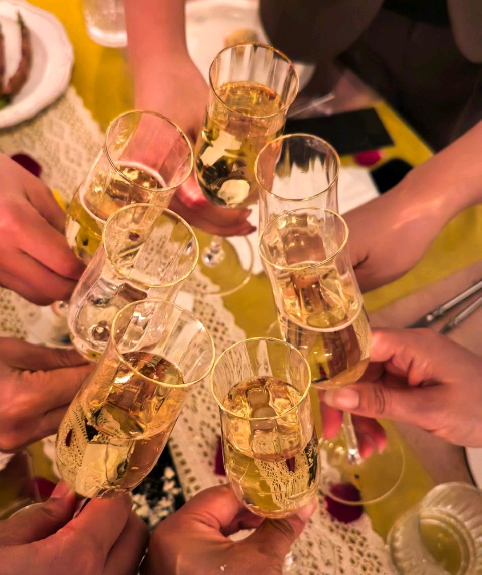 宴席上,大家纷纷举杯祝福新郎新娘,为新郎新娘送上祝福的话儿在嘴上:天作之合配对成双。早生贵子共创辉煌。 永结同心敢干敢闯。携手并进努力向上。夫妻恩爱放声歌唱。