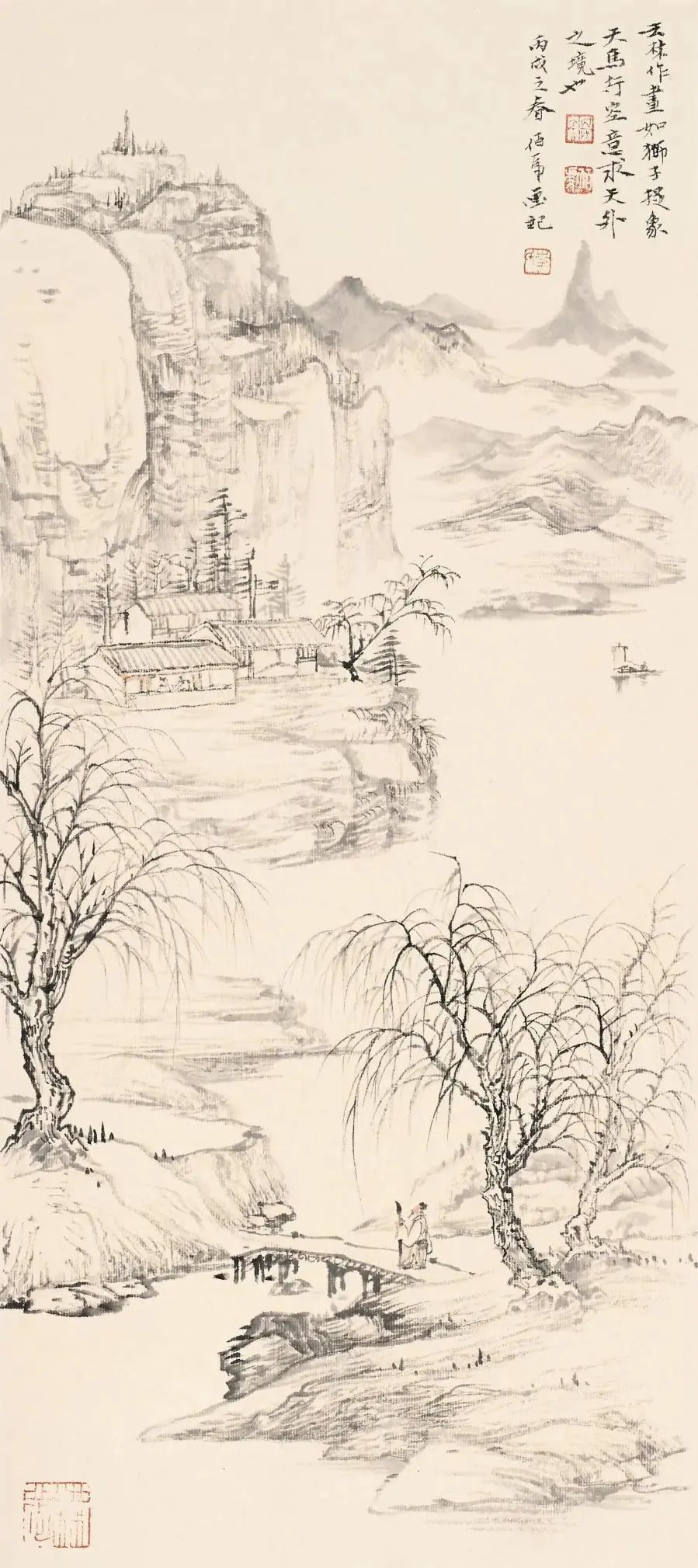 - **山水画**:李佰虎的山水画以传统笔墨为基础,注重意境与气韵的表达。他的作品既有宋画的严谨格法,又融入了元画的清雅与诗意,画面气势恢宏,意境深远。