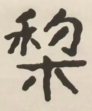 “梨”字我认为原字是黎字,也是因年久石损,线条残缺所致,如细看,刂字右上方有一撇,汉简及南北朝时期的书家就有将“氽”字写成“木”字的习惯(见图12)。