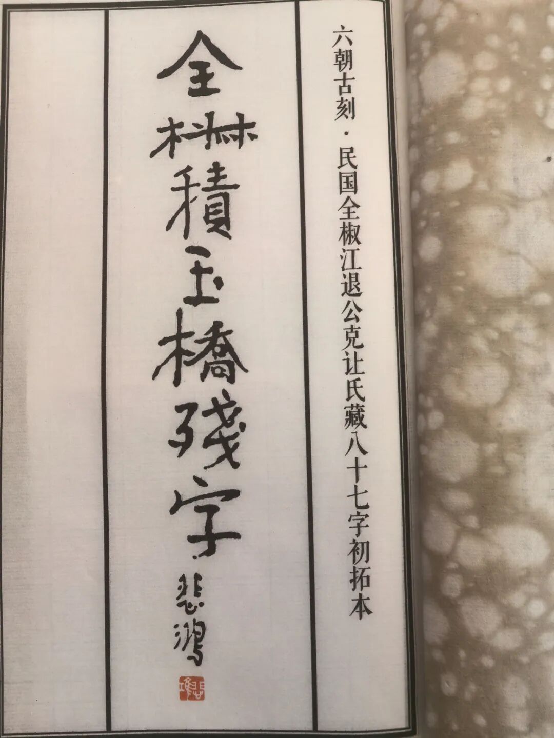 近日,安徽滁州书友马泉山先生惠寄了一册他编辑设计的《全椒积玉桥残字》,该书装祯精美,古色古香,书名由徐悲鸿题写,内有清道人等金石家题跋,残字发现者及拓本藏家江克让多篇补记。原书在民国九年上海有正书局初版。