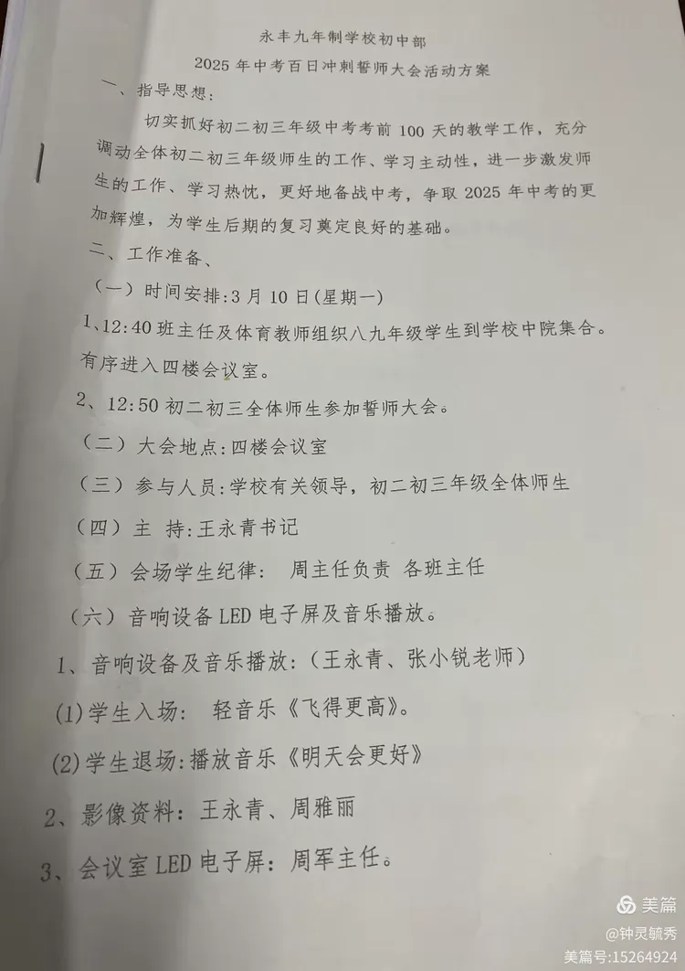 此次誓师大会不仅点燃了大家的斗志,更凝聚了家校合力。百日冲刺的号角已然吹响,我们永丰九年一贯制学校的学子们将以笔为剑、以墨为锋,在六月考场披荆斩棘,向梦想全力进发!