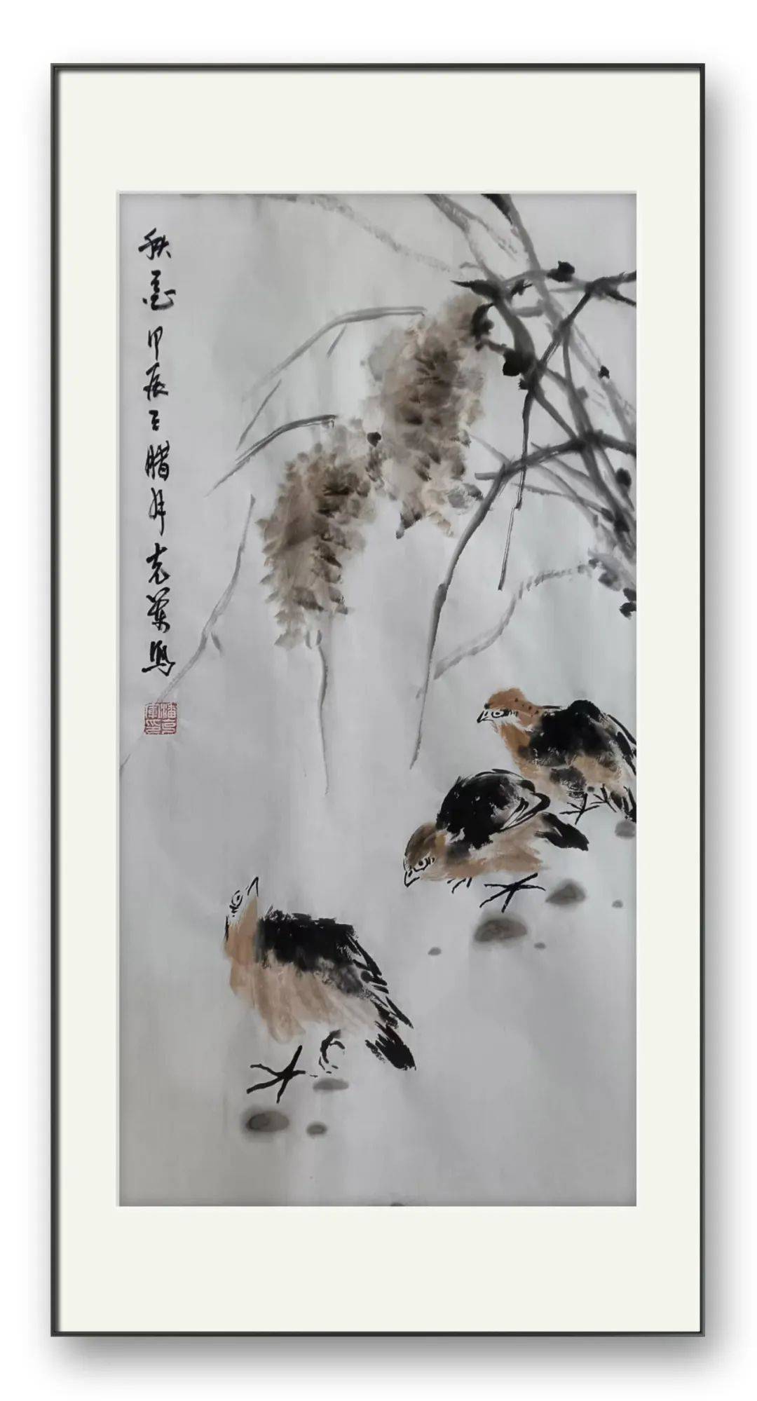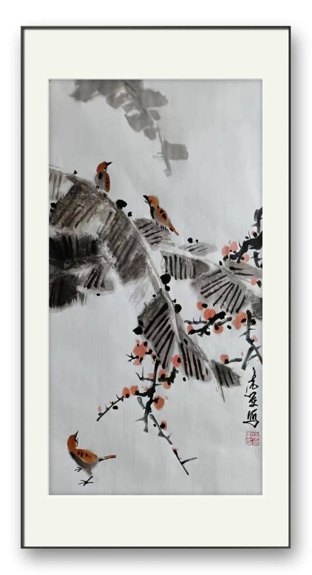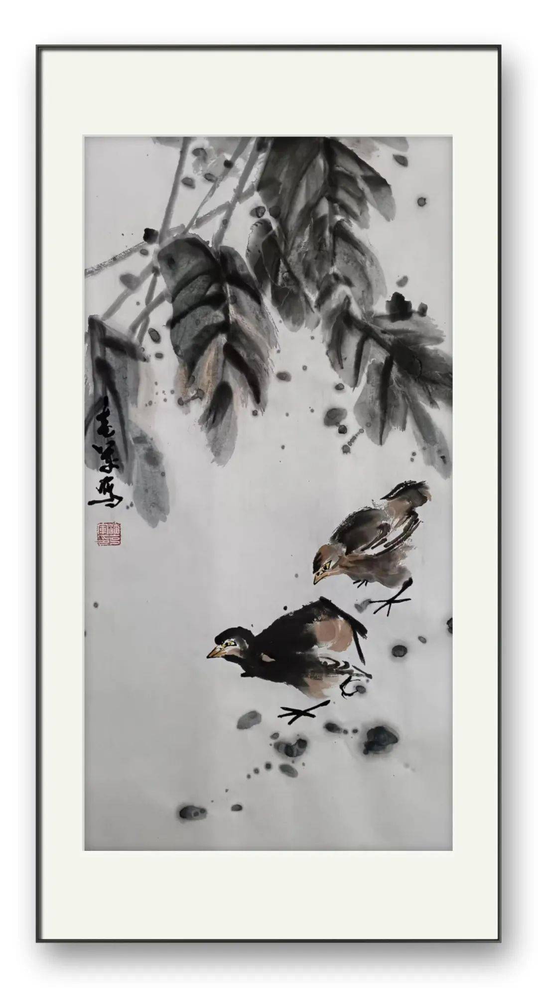 潘克军先生的用笔堪称神来之笔。线条流畅而富有弹性,如丝般细腻,又似钢般坚韧。无论是描绘花鸟的羽毛、花瓣,还是枝干、叶脉,每一根线条都蕴含着画家的情感与功力。或轻盈婉转,如蜻蜓点水;或刚劲有力,如苍松挺立。墨色的运用更是变化万千,浓淡干湿之间,尽显画家对墨的驾驭能力。浓墨处,深沉厚重,如黑夜中的星辰,散发着神秘的光芒;淡墨处,清新淡雅,如晨雾中的花朵,充满了诗意的朦胧。营造出了一种丰富而立体的视觉感受。”