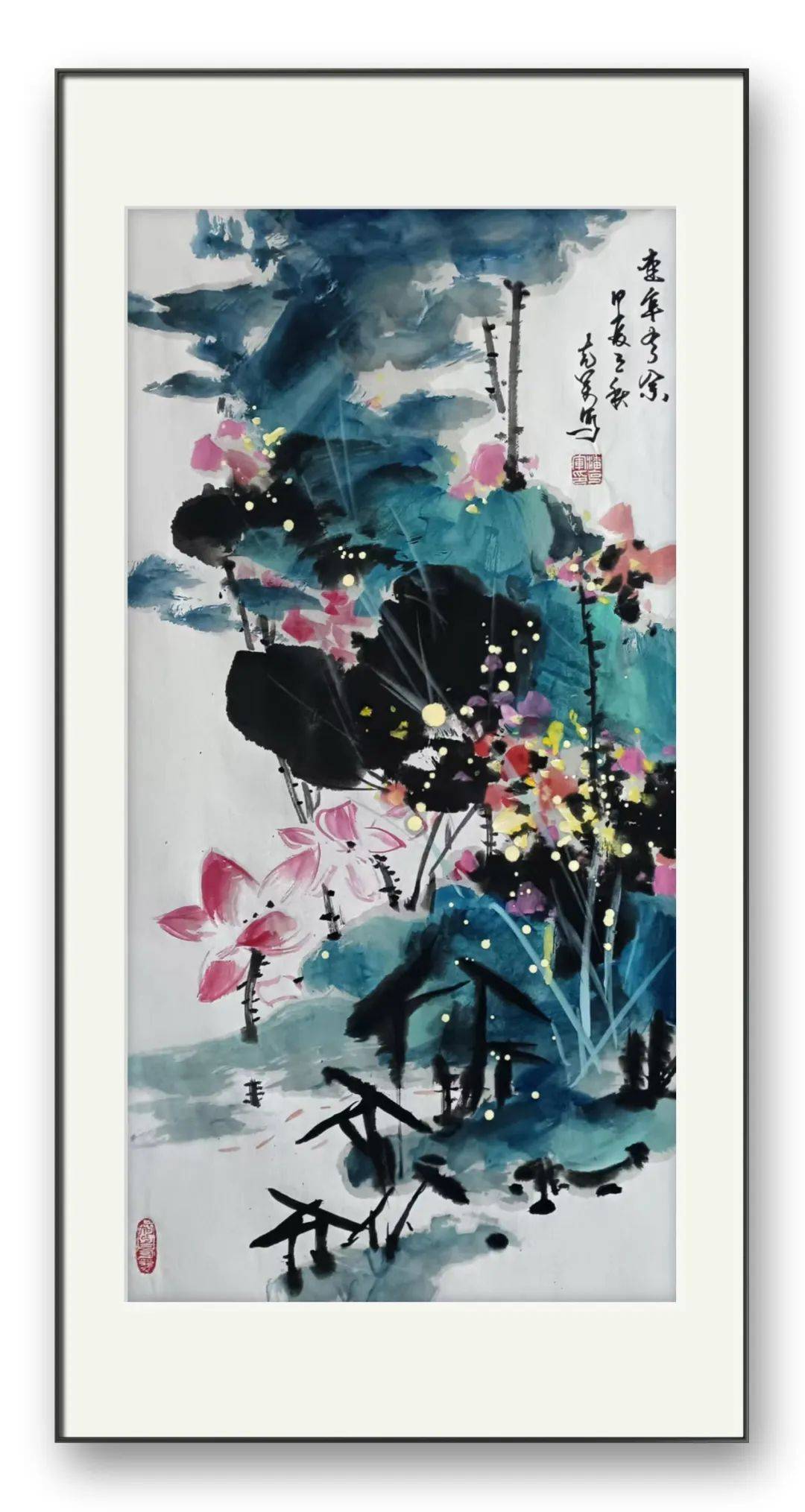 潘克军先生笔下的荷花落落大方,雅俗共赏,娇艳而不俗,沉着而不浮,生动而不匠。他的荷花不仅仅是对自然形态的描绘,更融入了自己的情感与思考,营造出独特的意境,让观者能感受到荷花的高洁与美好,同时也能体会到画家内心的宁静与豁达。
