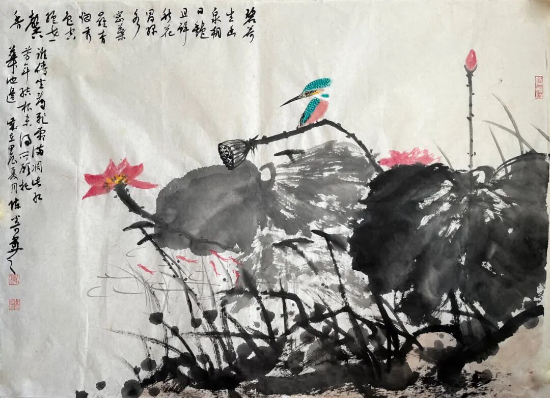 其隶书有魏晋大风,汉晋神韵,行书有二王之高格。书法用功之深,东坡、米芾、王铎等法帖皆以精研,烂熟于心,洋洋可观。总体作品气脉贯畅,章法特颖;枯笔涨墨黑白焕然,用笔无造作牵强之态,性情高畅,儒雅书卷之气扑面而来。再观其国画山水,有扎实的书法基本功线条,自然就见其骨力神韵,再加上熟习国画用墨的技巧,从墨韵到构图,皴法多变,恰到好处,足见其博览大家而汲取众长,聪明才智见诸好毫端。