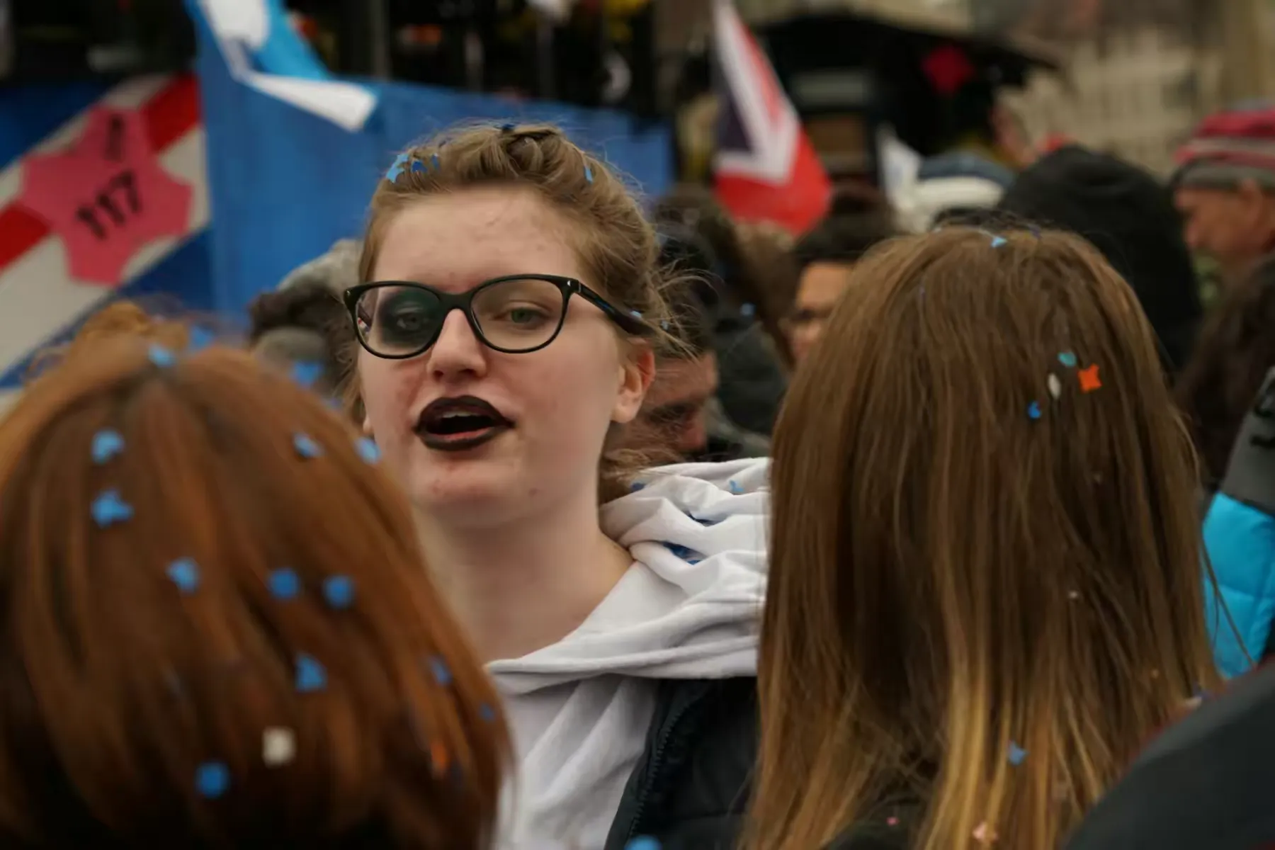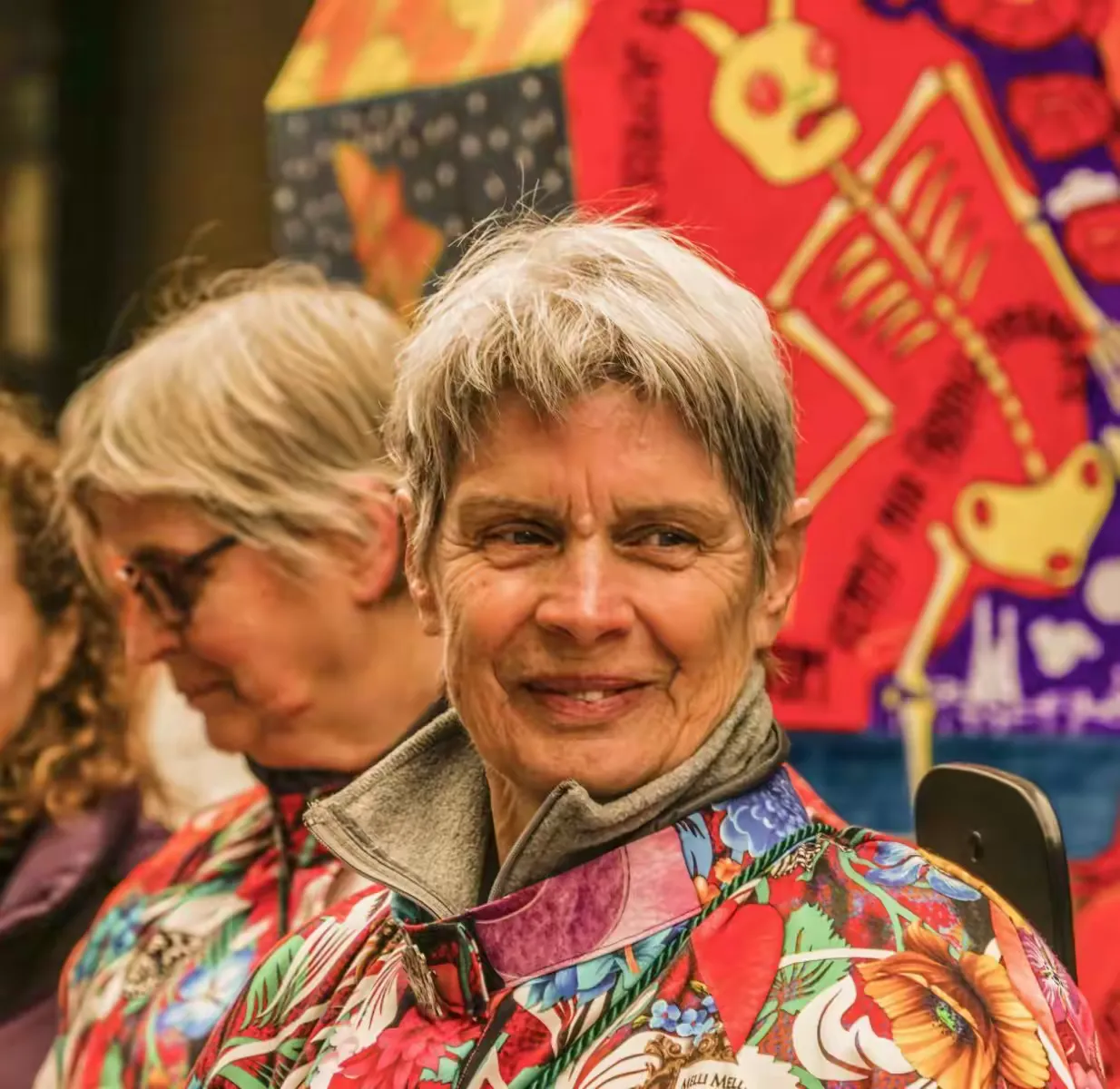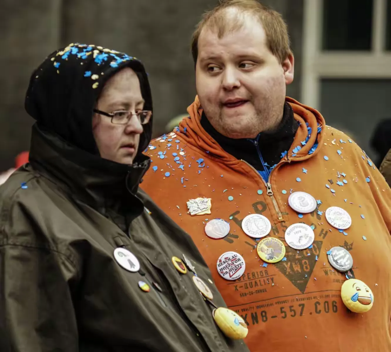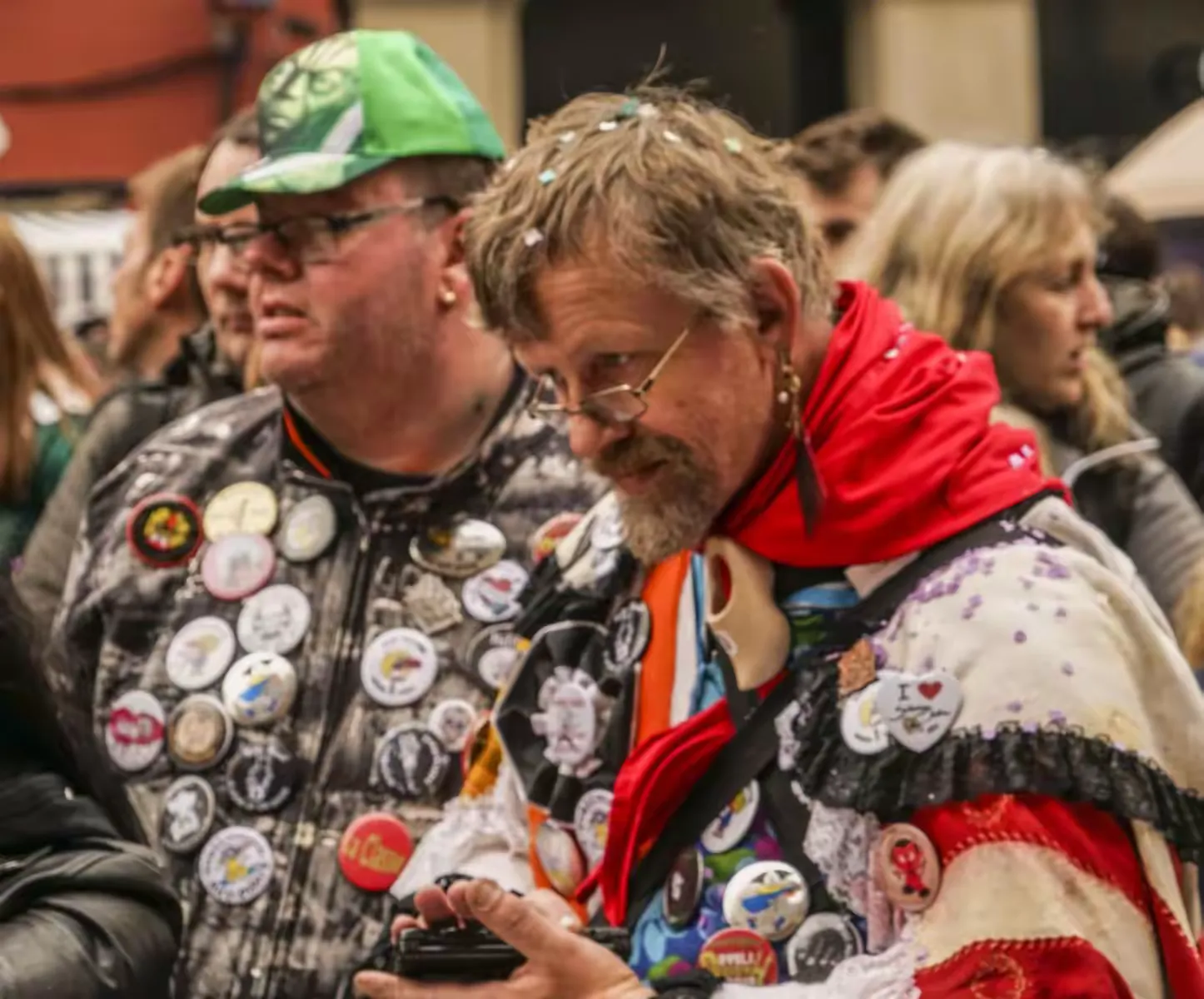 腿脚不便,挡不住她参加狂欢的热情,不但来了,还化妆了。她不是观众,不是旁观者,她是表演者,是国——王——不,是老太后!