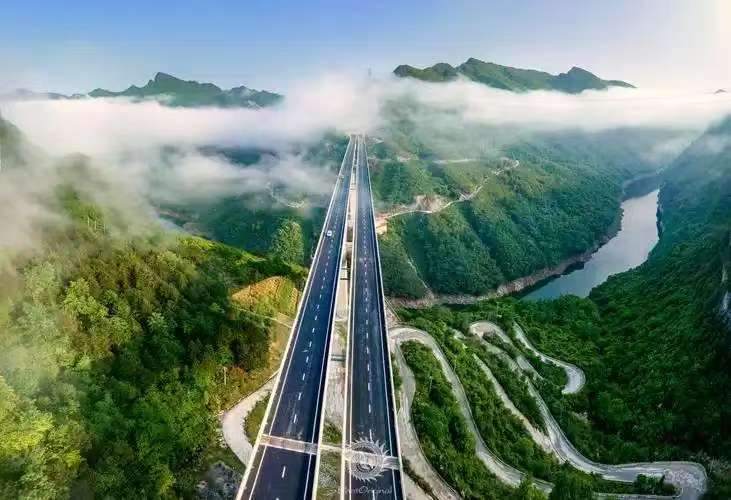 高速桥梁飞云间彩虹弹琴畅梦想;