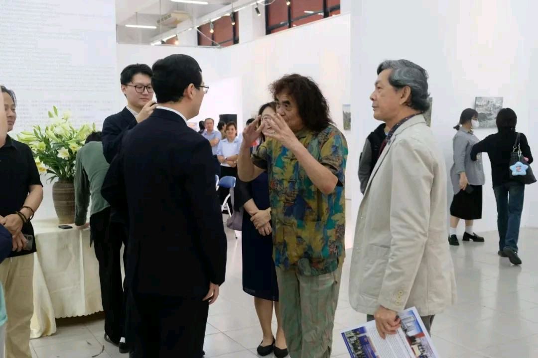 画家蔚国银先生动情地表示,他的作品如同从中国启航的船只,穿越山海,历经日本、东南亚多地,如今停泊于胡志明市,续写着中越艺术交流的动人篇章。每幅画作都是色彩与笔触间热烈而静默的对话,既展现了中国雪域高原与越南凤影景观的美学共鸣,更寄托着对中越深化文化交流的热切期盼。