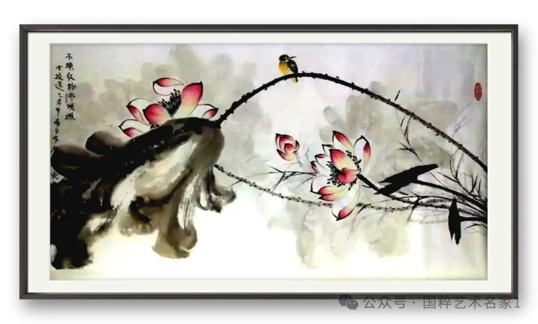 于振莲老师的花鸟画,造型严谨,笔墨洒脱,构图多变,趣味健康。这源于她爱读书、善思考与勤训练,更源于她海纳百川的心胸。她不追时风,不摹虚荣,踏踏实实作人,老老实实为艺,始终保持着独特的艺术个性。于老师的作品既有传统中国画的笔墨造型语音,又有与时代同步伐的图式呈现。走一条现实与浪漫相结合的路子。深沉中闪现灵动,飘逸中突现生机……