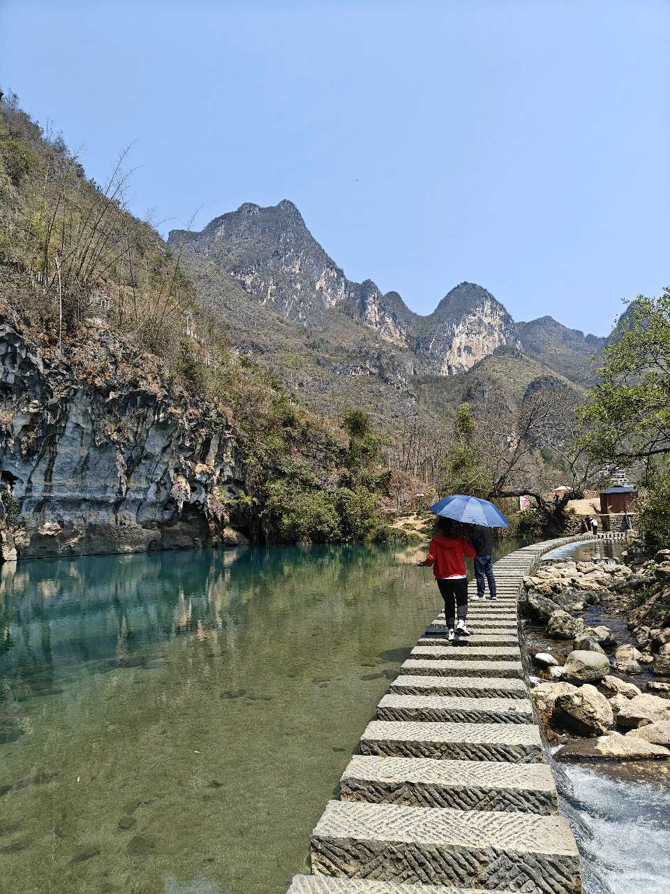在大井这一头,由于河面又宽又深可以荡舟,只要上了小船十来个人可以坐在一起漫漫享受。哇塞哇塞!坐在小船里头,可以一边拍照一边与亲友交流,河岸有些古树,也有十来户布依族民宿。坐船到了停船处,大家下船后,可以吃些烧烤,也可以吃些火锅好好享受享受。如果有需要住宿,也可以进住布依族民宿,了解一下他们的一些风俗。