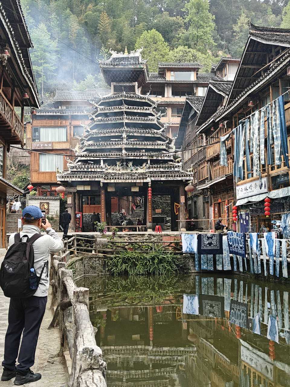 我们一家人进入肇兴侗寨,首先就看到了钟鼓楼与石板街,红灯笼挂在楼前一排排,春雨一吹来,就左右摇摆,早晨起来,就看到了很多游客漫步肇兴侗寨每条街。有的游客一边行走一边拍照留念好像舍不得离开。