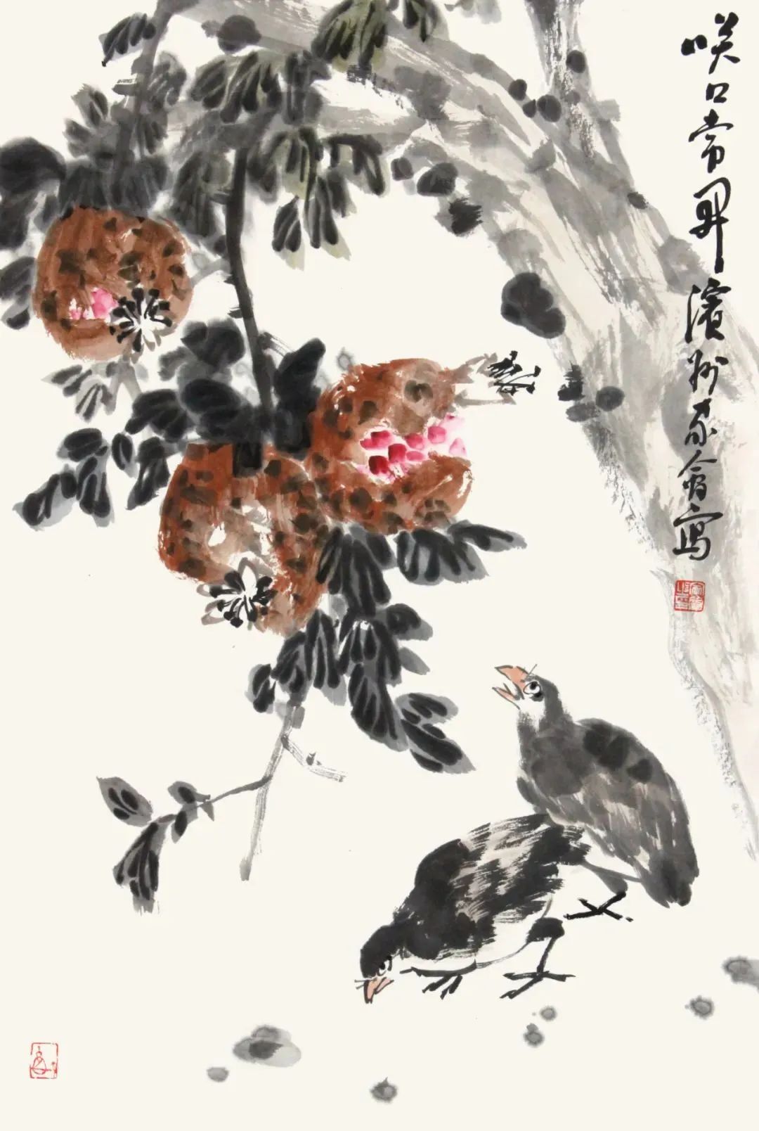 题材的广泛性与多样性:张家会的创作题材广泛,除了传统的花鸟画,他还创作了大量反映自然景观和人文情感的作品。他的作品不仅展现了自然之美,还传达了对生活的热爱和眷恋。