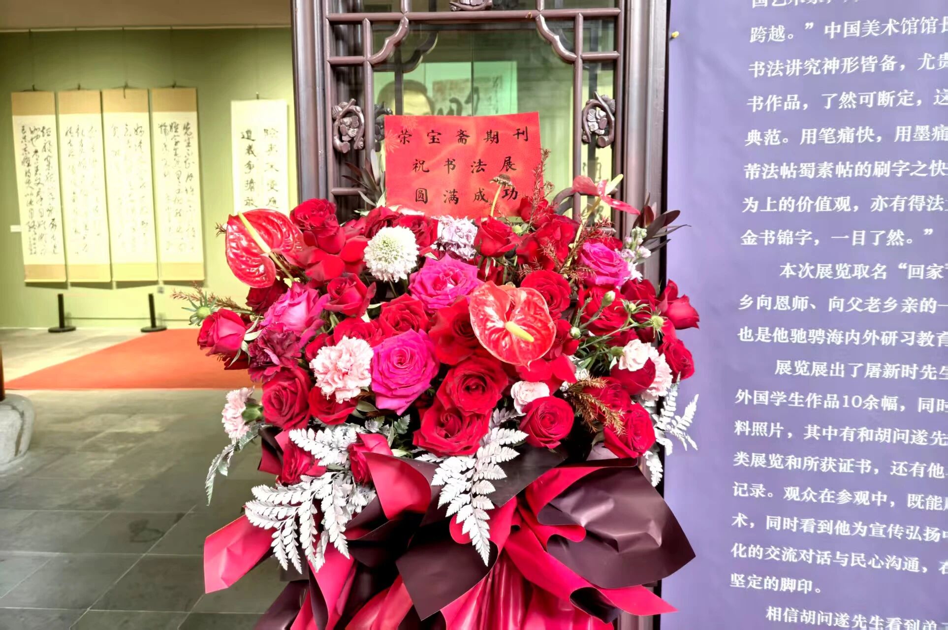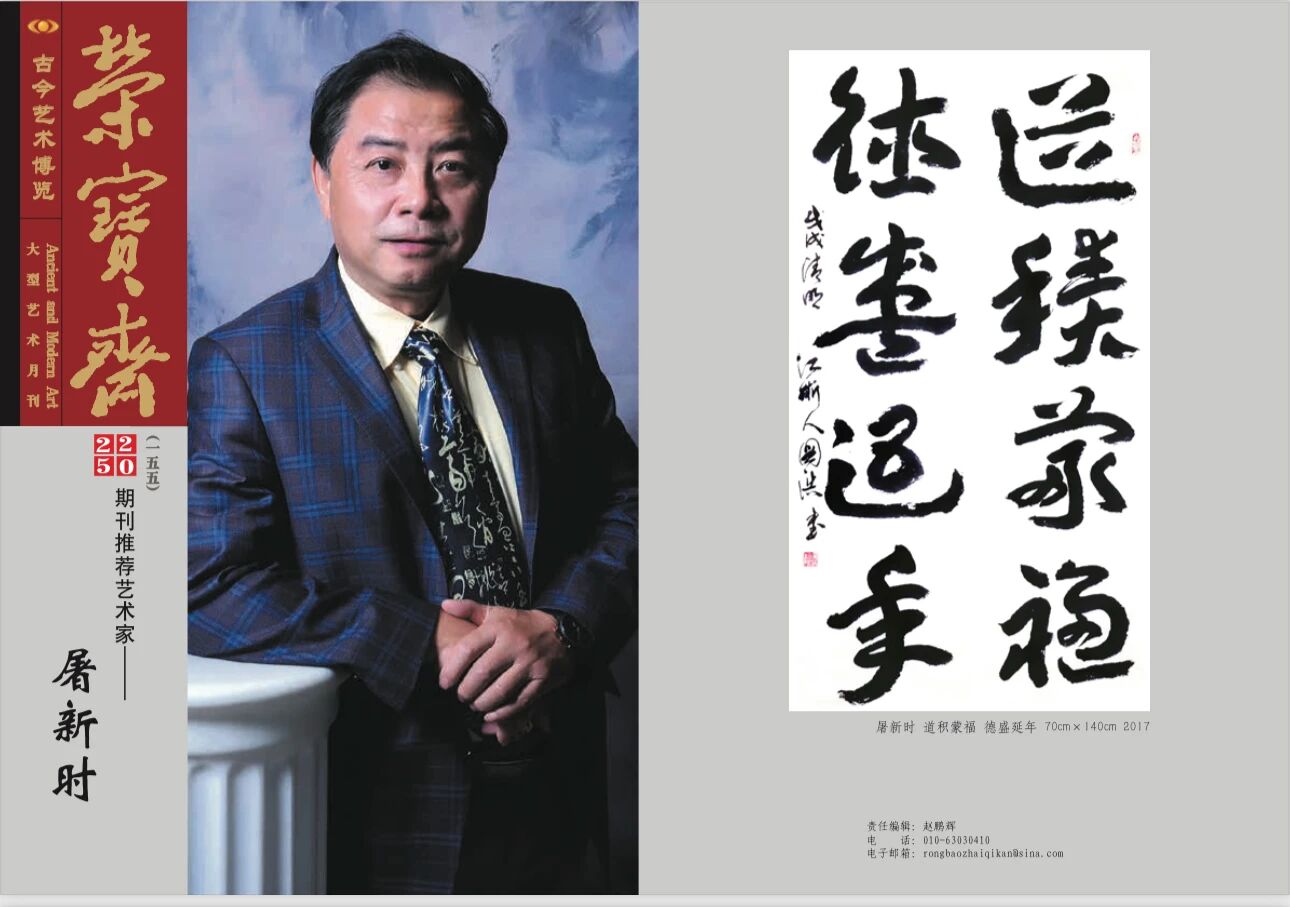 《荣宝斋》期刊2025年( 155期)期刊推荐艺术家一屠新时, 是编辑部对其大量作品作了严格艺术审核与评定,然后推出的第一位旅美书法家。 本期刊网上公布的当天,3月27日,正值“旅美屠新时书法与国际传播展”在上海胡问遂艺术馆隆重开幕。荣宝斋期刊社委托星艺传承(北京)文化有限公司专程送上了鲜香大花篮,并由李霞常务经理在开幕仪式上致词祝贺。体现了荣宝斋编辑部对屠新时书法艺术和国际传播工作成就的高度肯定与赞赏。