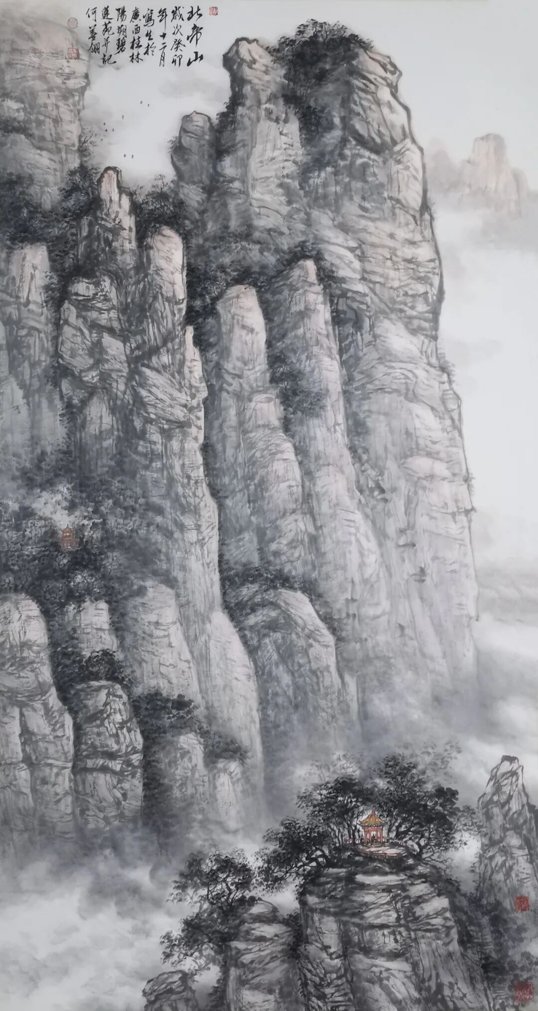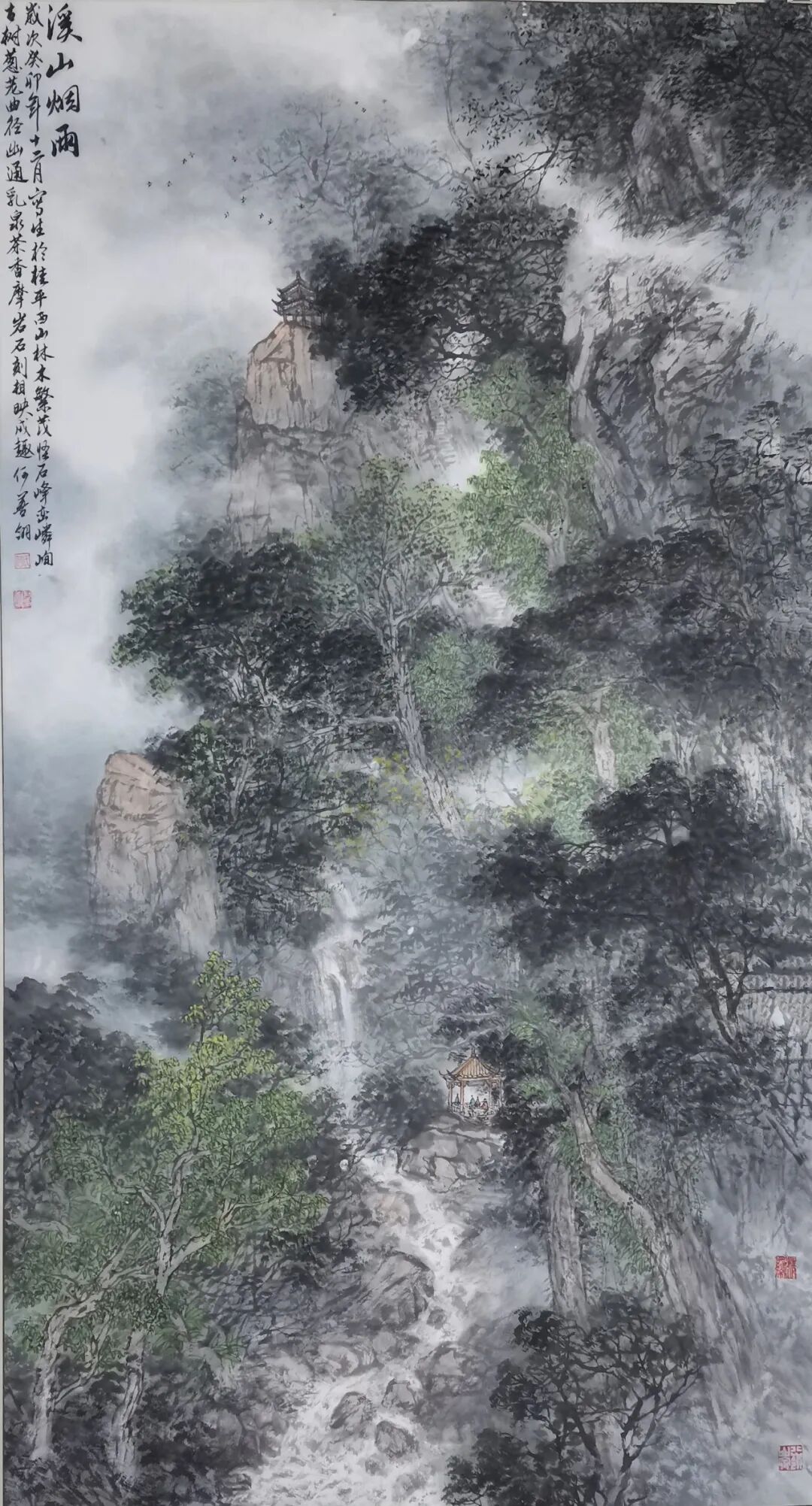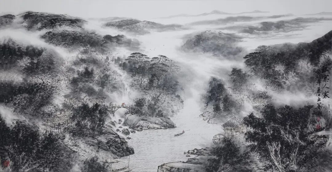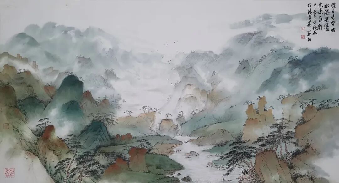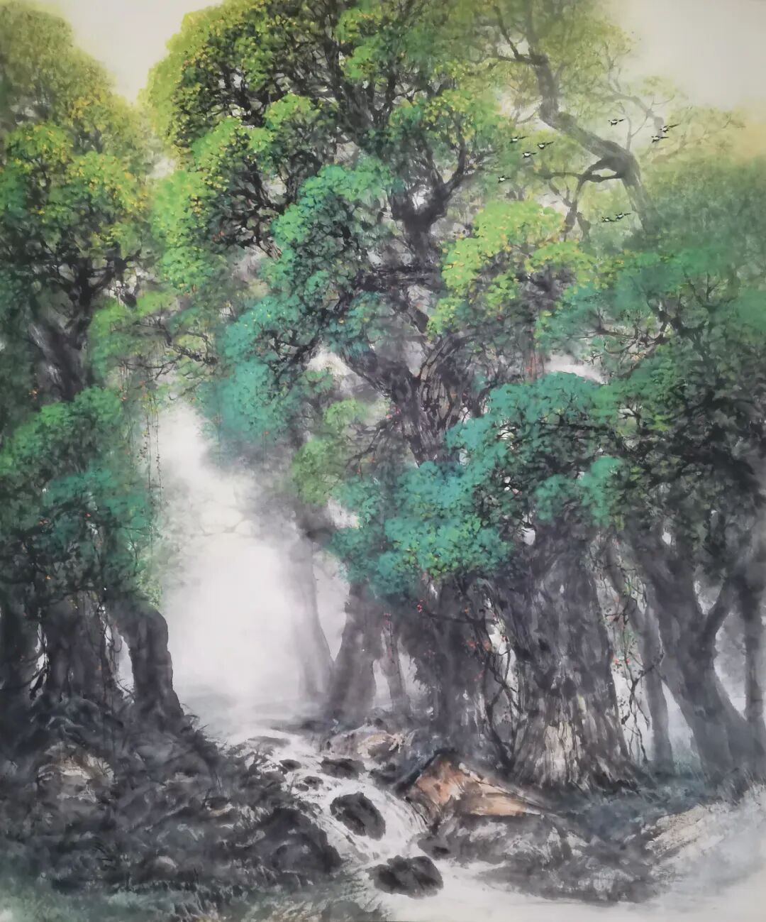 在我看来,何善翎先生的山水并不是停留在“以景娱目”的浅表审美上。因为他的山水兴致不止于此,而是深谙“造物真我师”的写生真谛,旨在绘天机之勃露!故观其画,俨然没有常人笔墨中的躁气、匠气,而是一味绝俗,萧远峭逸,刊尽雕华!这般深具天然妙机的山水佳作,不仅是能给人带来赏心悦目的视觉体验,更是能从心中唤起人们对于林泉野趣的无限向往,并为之激发出澄怀观道的隽永情思。万物静观皆自得,山水澄怀是我心,此间之乐,实是与天地精神相往来,愈品愈有一番真淳滋味!