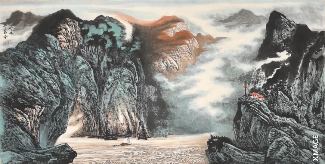 都市化文明总是伴随着快节奏,尤其对传统书画艺术来说,更是难有古人的澄怀心境。而对于观赏者来说,一幅优秀的书画作品,也总是能在不经意间弥补心中的情感慰藉。像今日著名画家黄云廷先生的画作,便就是基于这一点而进行创作的文人画典范。看他的山水,大胆构思而无小家之气,笔墨皴法在宿墨组构中营造天地,可试思鸿蒙之开辟山川,大者巑岏,纵横而出,是谓远视苍苍,近视茫茫,独有一番荆浩、范宽等先贤的画境妙韵,观之令人瞻恋不已!
