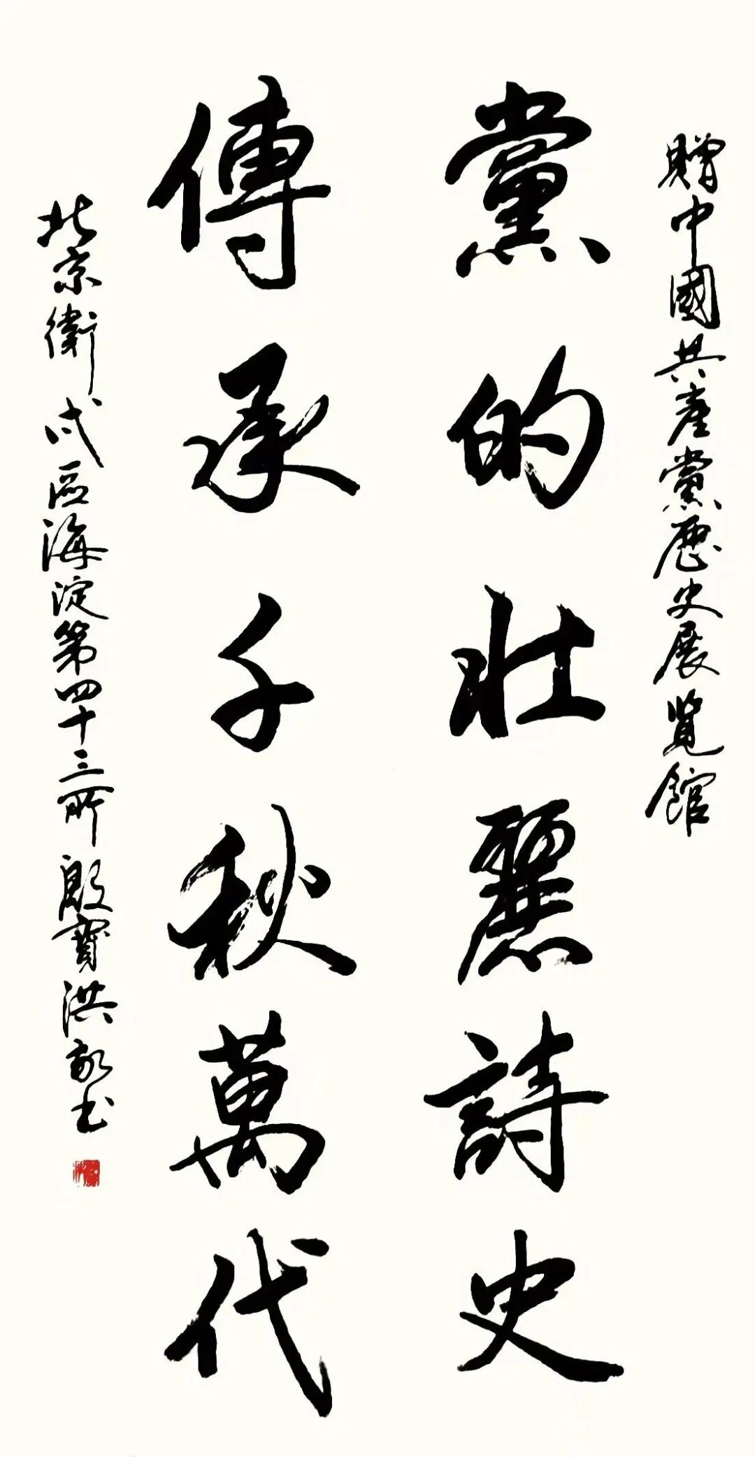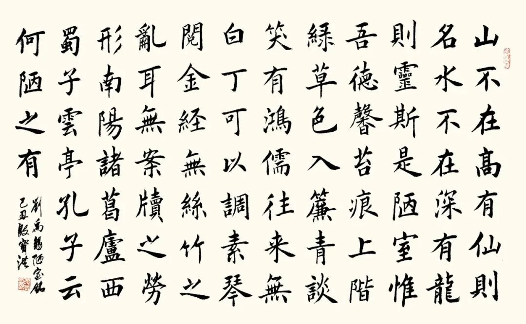 在嘉木繁荫、百卉争妍之中,有如乔松寒柏,傲然兀立,正直高清。肃穆端庄的正大之气,足见渤海森森武库之概,更具山阴寒暑调阳之致。几十年读书心无旁骛,半生缘习字用志不分。如此苦心孤诣,孜孜矻矻,坚守案牍而无有异动。以书道文心收获探秘钩深之效,使学书之路走得坚决而稳定。笔耕无间,不畏年迈。执著钻研,翰采盈馨。令人无由轻忽。如此情致,快然自足。幸甚!庆甚!