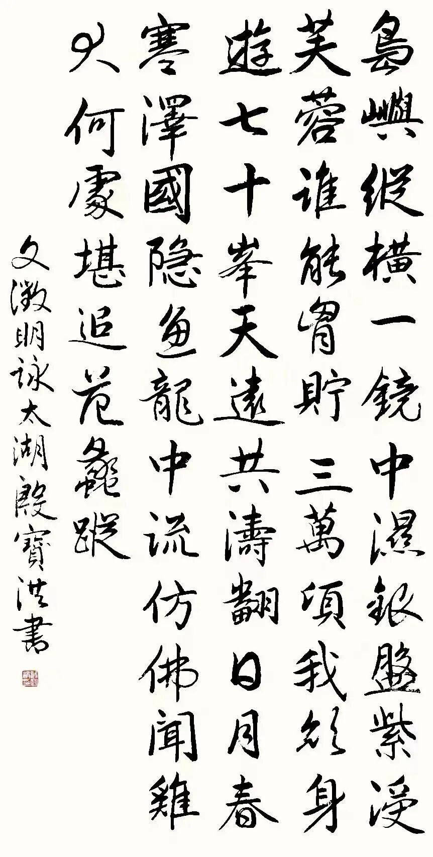 殷宝洪,祖籍常熟,出生无锡,文商世家,学历大学,正军职少将军衔。1961年入伍,职任原解放军艺术学院政委、南京政治学院兼职教授。书学师从温彦国先生,2005年为中国书法家协会会员、中国榜书艺术研究会顾问。作品曾被“第八届全国书法篆刻作品展”、“全军中国书法家协会会员优秀作品展”,中国文联、中国书协联合主办的“迎庆党的十八大部长将军名家书法作品邀请展”等全国、全军书画展入选展览,并捐赠全国性公益事业、沙漠植树、汶川地震、希望小学、部队官兵、家乡母校、政府部门等。2007年中日建交35周年应邀赴日本进行书法艺术交流。作品与简介辑入文化部主编的《中国艺术大家》,并被中国美术馆、军事博物馆、中国收藏家协会展出或收藏。著作有散文《欧洲六国纪行》(解放军文艺出版社出版发行)。