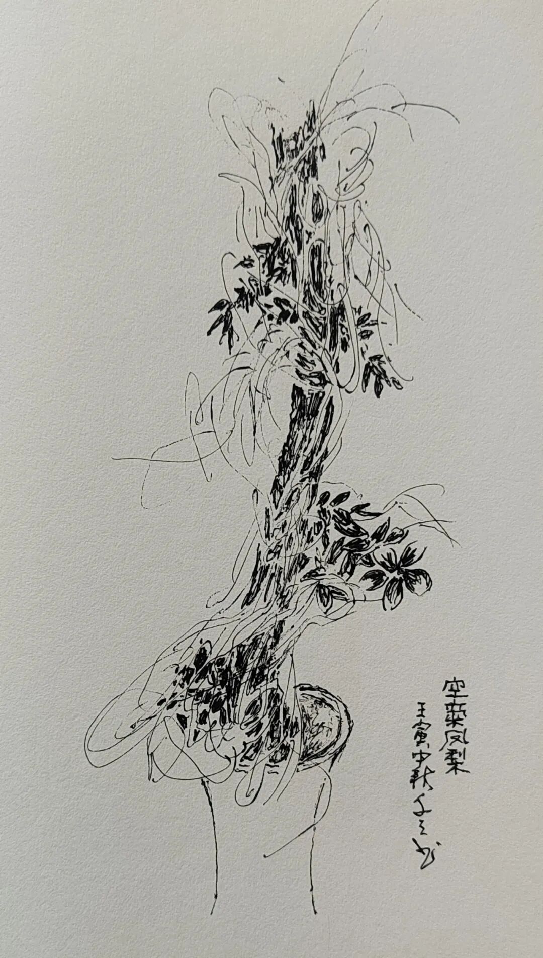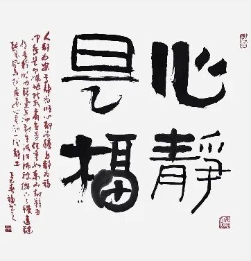笔墨有道自抒胸臆。看先生书法,也是博涉多广,既有魏晋行书之逸气,也有秦篆碑铭之真气。其中行书,最堪妙哉,字字盈盈之中自有一种飞逸张弛之势,尚慕晋轨,参互错综,线条遂至妙绝!尤其与画品相宜处,更是真正践行了书画同源之真谛。以丹青养书韵,借翰墨抒胸臆,二者相生相发,终至“无意于佳乃佳”的化境:禅心妙意,古趣澄怀。而此般境界,也实非自出机杼者不能至也。书画心声,秀颖超举!