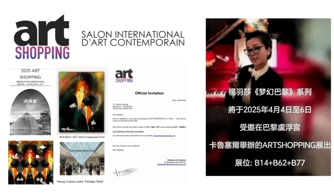 近日,才华横溢來自中國香港的女艺术家楊羽莎受邀在法国卢浮宫举办的2025年法國當代國際艺博會ART SHOPPlNG首次亮相,这一盛事宛如一颗璀璨的明珠,在艺术之都巴黎绽放出耀眼光芒。