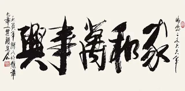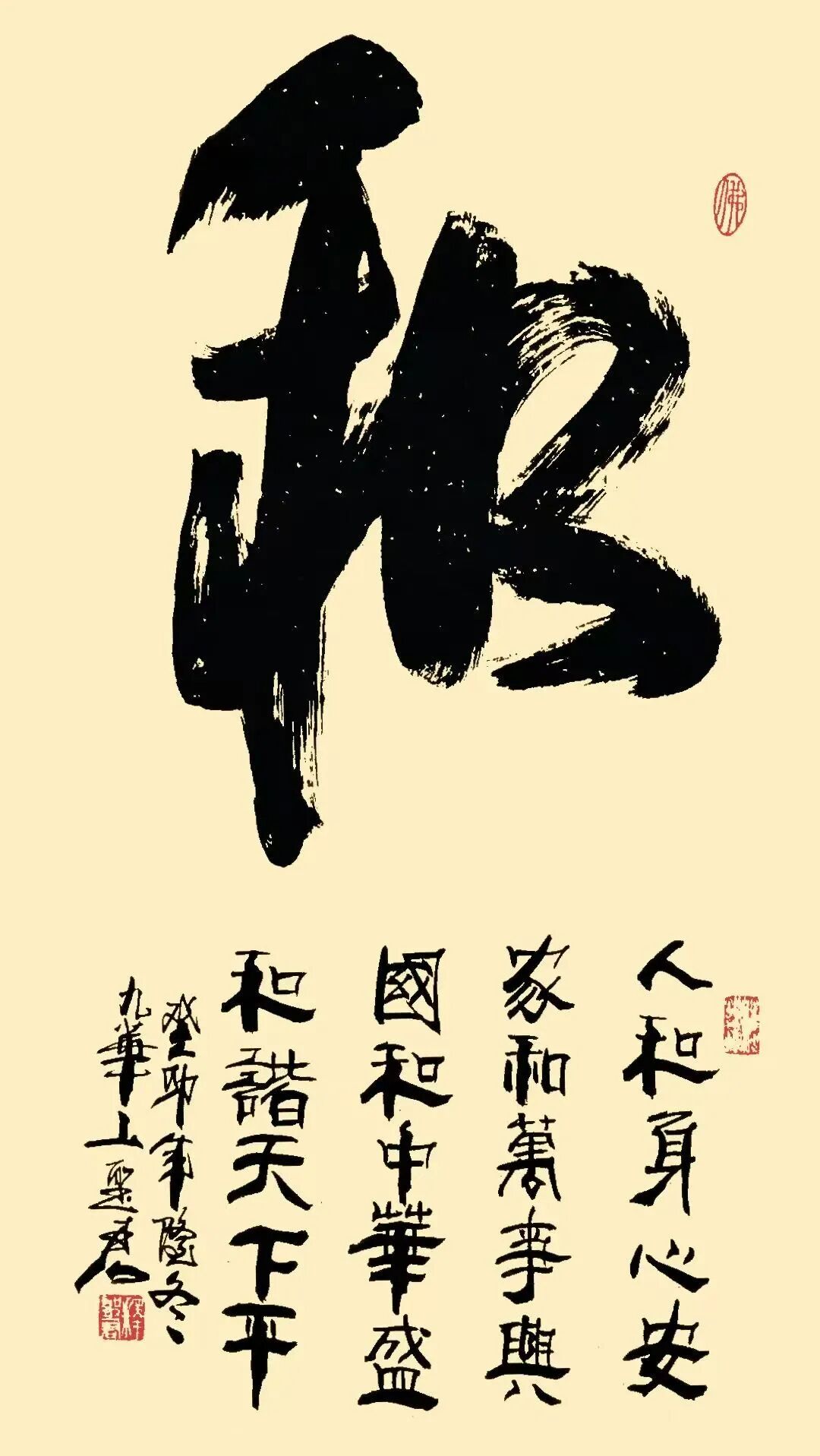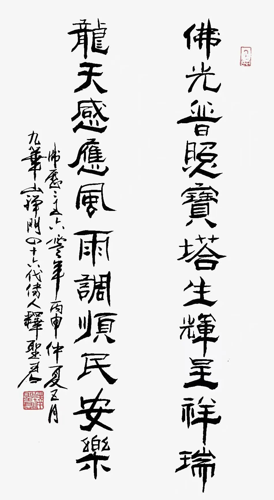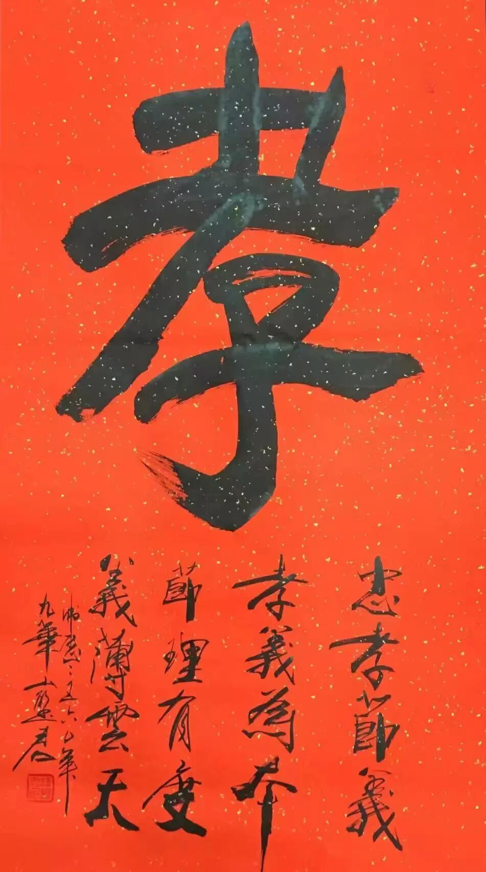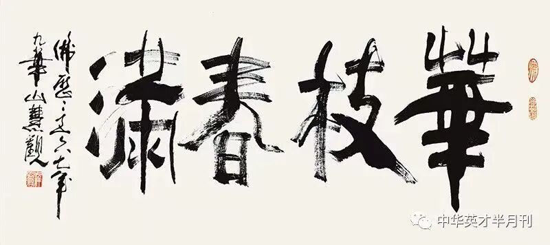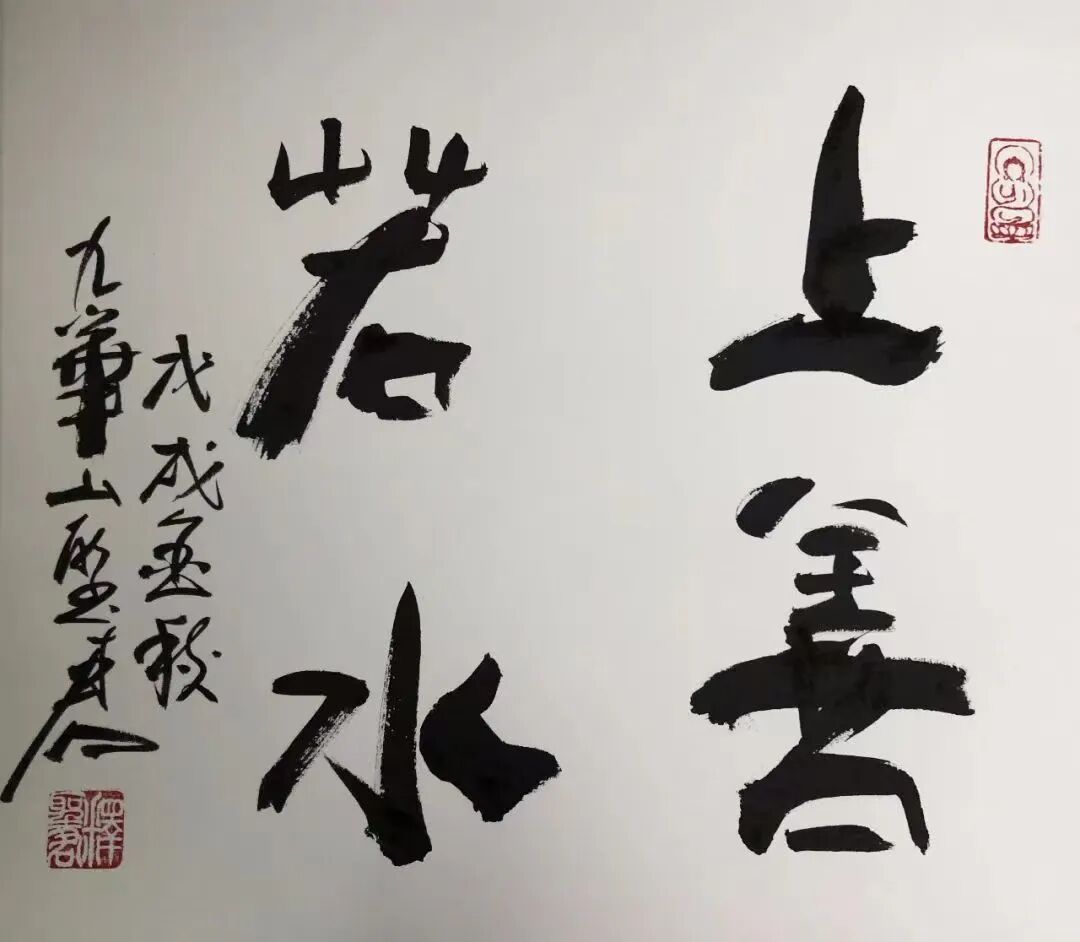 一幅幅榜意真功,深得浩然荡气。斗笔落墨,沉着遒健,每一幅大字,也都大致是可分为两个特点,一是“清正”,提笔写就立意至高,是在澄神静虑中下笔,亦是在端己正容时稳思审之。从而定志以帅其气,养气以充其志。其二为"雄畏"之象,其榜书笔力千钧,气贯满幅。字字之雄厚,实乃肃穆巍然,故对观其书,犹如仰岱岳之巍峨,临沧海之浩瀚,可以绝去纤巧妍媚之态,摒除柔弱取媚之姿。尤为可贵者,则在于他能将禅宗的“明心见性”与书法的“技道双全”熔于一炉,使点画之间既见佛门乾坤,又显心性本源。所谓树之为勋猷,立之为节操,万法归一,正当如是!