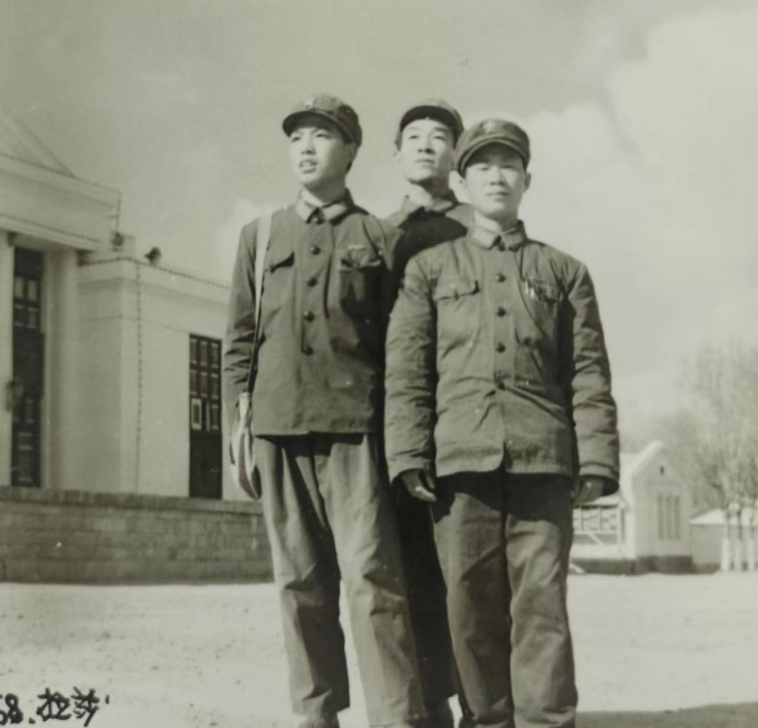 1975年(50年前)在西藏军区大礼堂前合影后中詹仕华,前左李义忠、右陈定毅