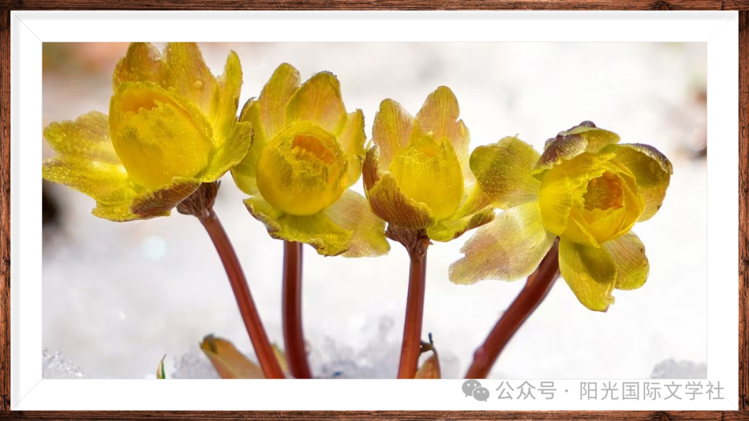 在料峭春寒中,几株冰凌花悄然绽放。金黄的花瓣明艳夺目,边缘晕染着深褐,恰似大自然精心勾勒的笔触。纤细却坚韧的红茎,从冻土中挺立而出,无畏周遭的凛冽。它是春的信使,在冰雪尚未完全消融时,便以柔弱之躯打破冬日的寂静,用一抹灿烂宣告生机的回归,于荒芜中点亮希望,在冷寂里诠释着生命的倔强与不屈。——题记