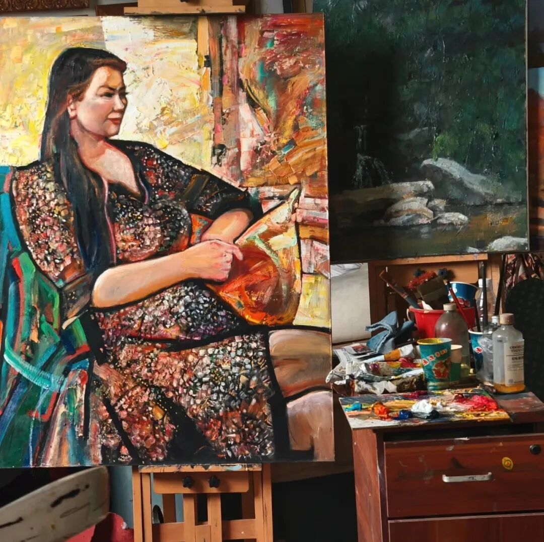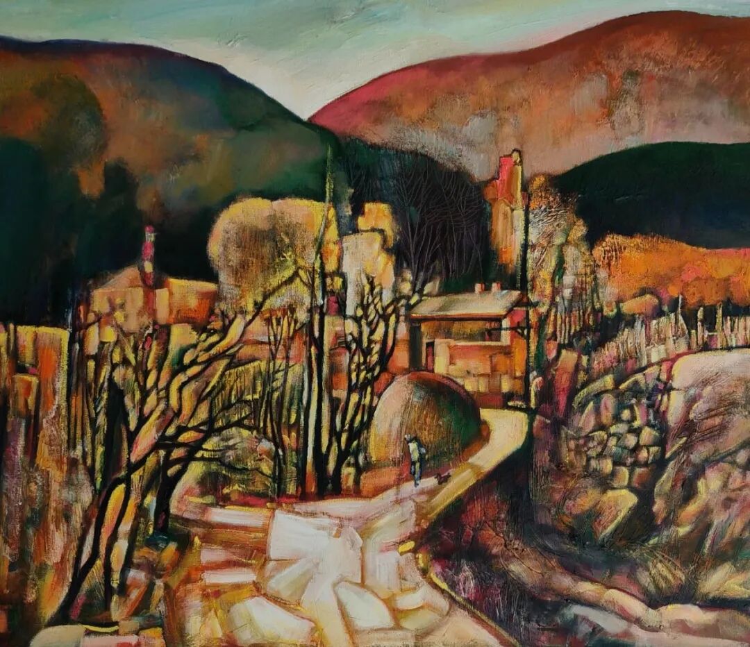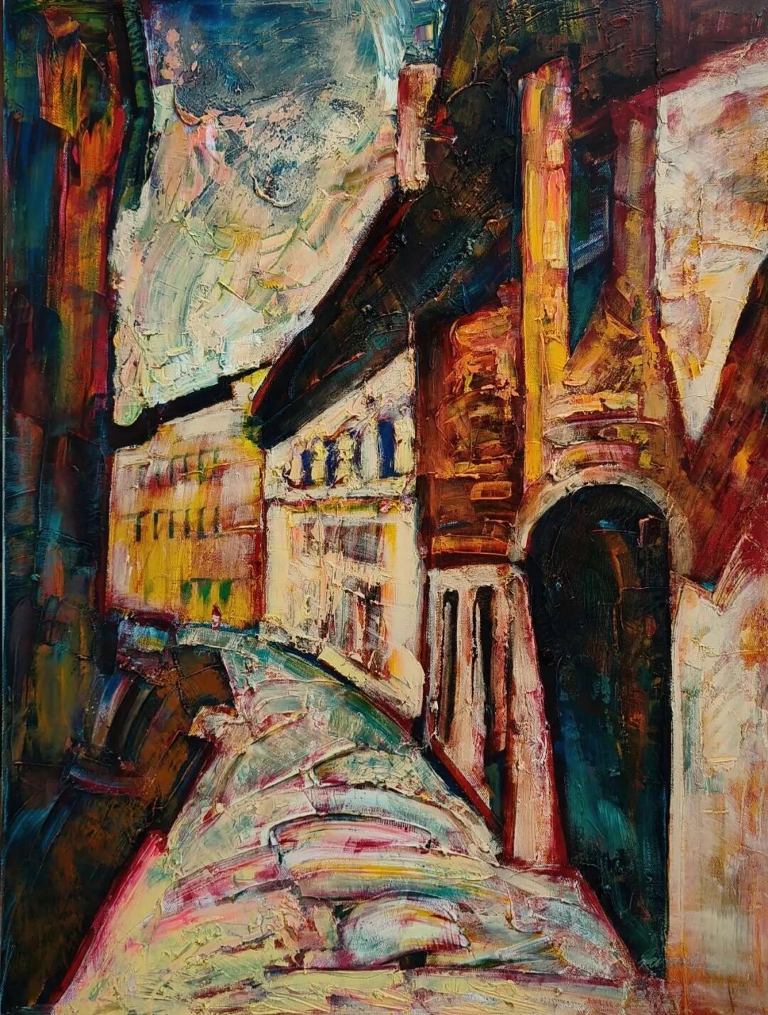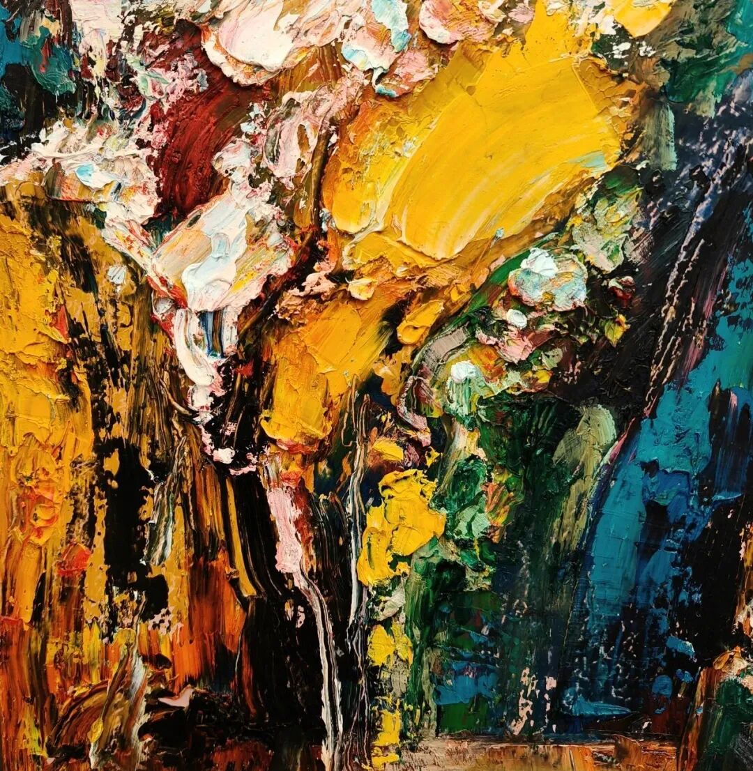当徐国华先生执笔作画时,自身仿佛是进入了庄周梦蝶的化境。调色板上的颜料也不再是简单的物质存在,而是成为了他通向心灵秘境的钥匙。画笔起落间,他已彻底脱离了常规意义的写实路径,取而代之的,则是一条通往无我本真的艺术蹊径。这种创作状态,不禁让人联想到梵高的影子,手与心交集,笔与纸牵引,往往在不经意间,就能绘就一番妙象。这是对自我心灵的永恒叩问,更是用真情在画布上写就的色彩诗篇。诸如他的一系列人物画,徐国华先生从不满足于皮相之似,而是能以画笔直指人物的精神内核。包括那些跃动在风景画上的瑰丽色彩,经过他抽象化的手法淬炼,竟在虚实相生中构筑出了超现实的审美意境。色块仿佛是具有了生命一样,可以与所绘题材形成共振和鸣。而这一切的创作关系,我个人认为也并非是后天所学的结果,实则是源于徐国华先生的艺术天资,就像莫奈天生对光线敏感,徐国华先生的色彩造诣,也是如此。