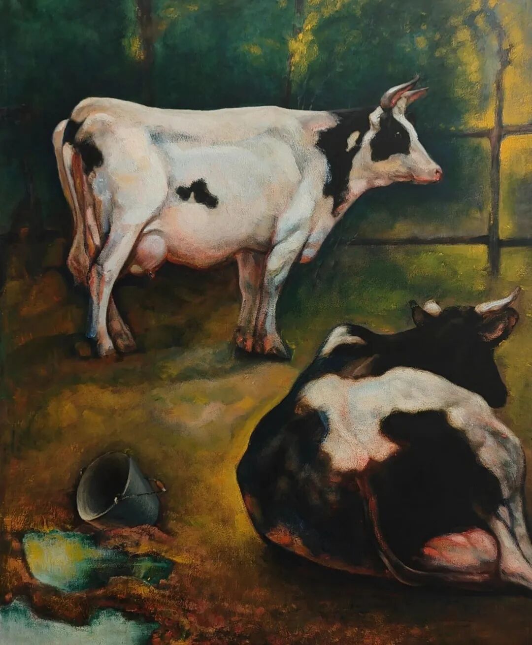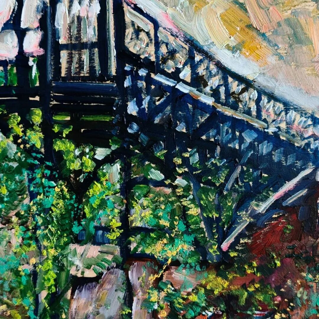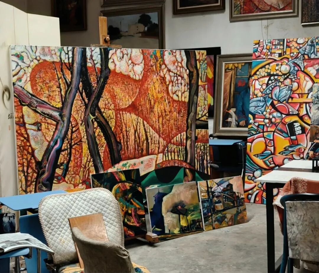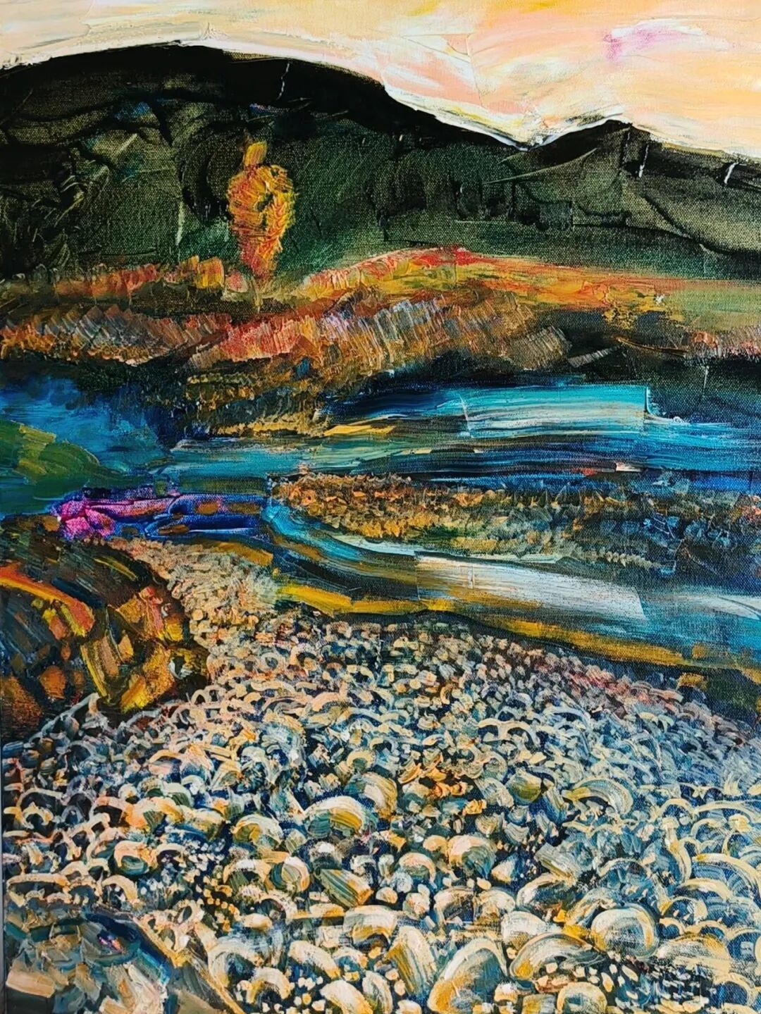当徐国华先生执笔作画时,自身仿佛是进入了庄周梦蝶的化境。调色板上的颜料也不再是简单的物质存在,而是成为了他通向心灵秘境的钥匙。画笔起落间,他已彻底脱离了常规意义的写实路径,取而代之的,则是一条通往无我本真的艺术蹊径。这种创作状态,不禁让人联想到梵高的影子,手与心交集,笔与纸牵引,往往在不经意间,就能绘就一番妙象。这是对自我心灵的永恒叩问,更是用真情在画布上写就的色彩诗篇。诸如他的一系列人物画,徐国华先生从不满足于皮相之似,而是能以画笔直指人物的精神内核。包括那些跃动在风景画上的瑰丽色彩,经过他抽象化的手法淬炼,竟在虚实相生中构筑出了超现实的审美意境。色块仿佛是具有了生命一样,可以与所绘题材形成共振和鸣。而这一切的创作关系,我个人认为也并非是后天所学的结果,实则是源于徐国华先生的艺术天资,就像莫奈天生对光线敏感,徐国华先生的色彩造诣,也是如此。