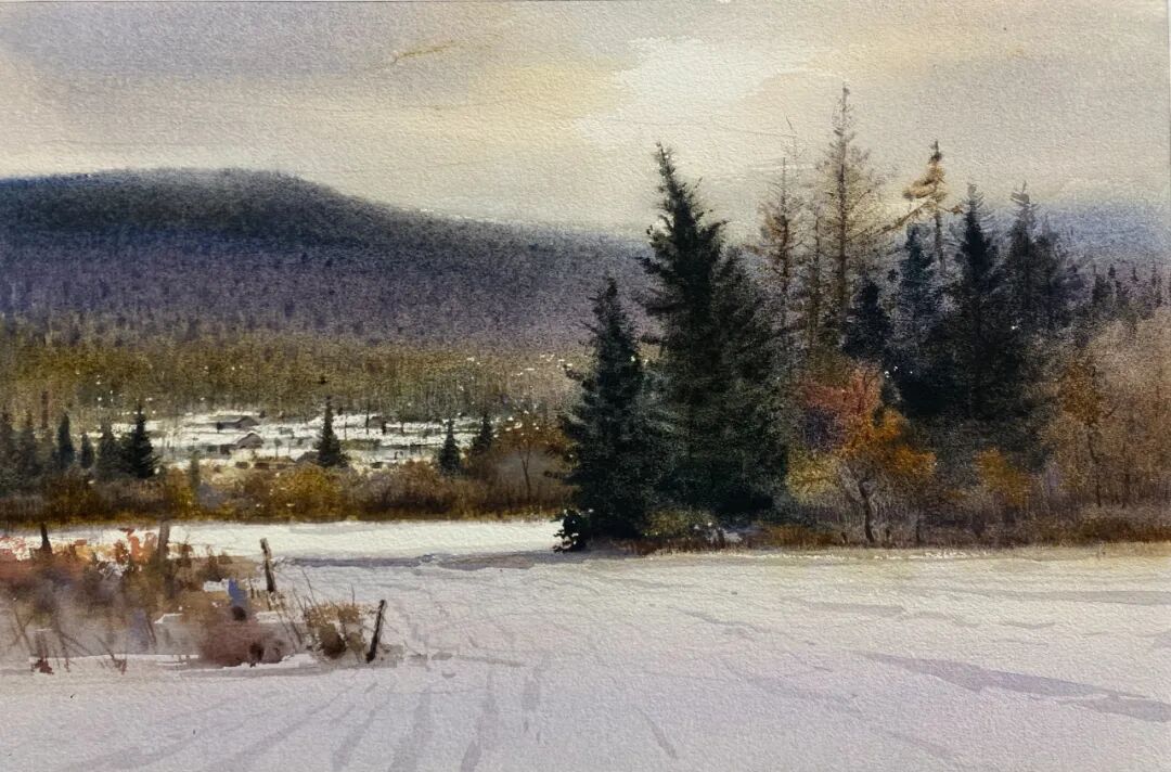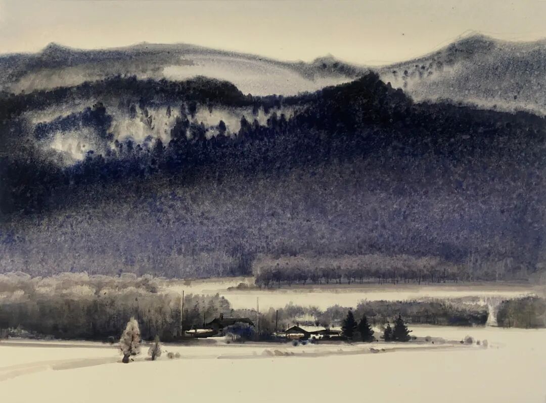 当下社会流行着这样一种说法:东北孩子的成人礼,就是一张南下的车票。这背后所折射出的,实际是现实生活的阵痛与无奈。而胡晓东先生选择以水彩为媒介,执着地描绘东北风貌,这本质上就是一种文化的守望与精神的还乡。在写生中捕捉故土之美,在创作中追寻艺术理想,可以说,胡晓东先生是以最真挚的情感体验和艺术思考,来向我们持续诠释着绘画艺术的本真意义。