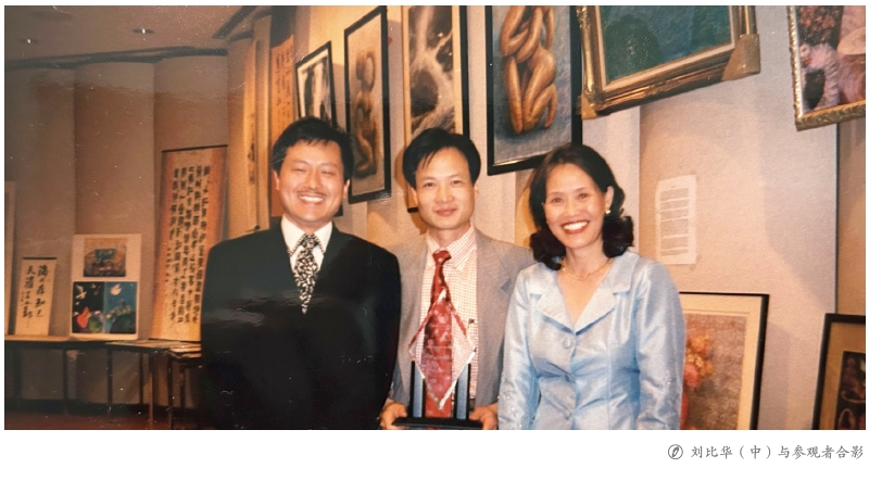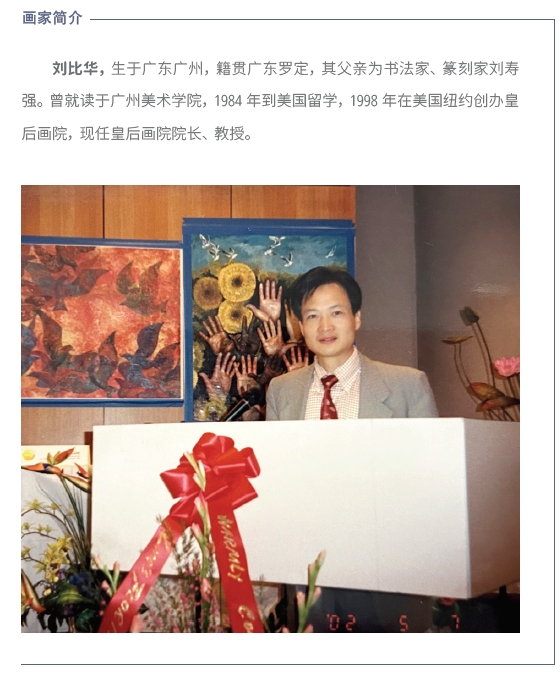 清晰记得,18年前,纽约有位朋友这样向我介绍他:有个奇怪的画家,他画画非常特别,居然不用画笔,就能够画出油画……我听后很好奇,于是迫不及待地驱车到纽约东部贝赛的画室拜访了他。他叫刘比华,看上去就是个英俊瘦弱的白面书生,谈吐温文尔雅,全然没有纽约苏荷区常见到的那种前卫、怪异的艺术家形象。