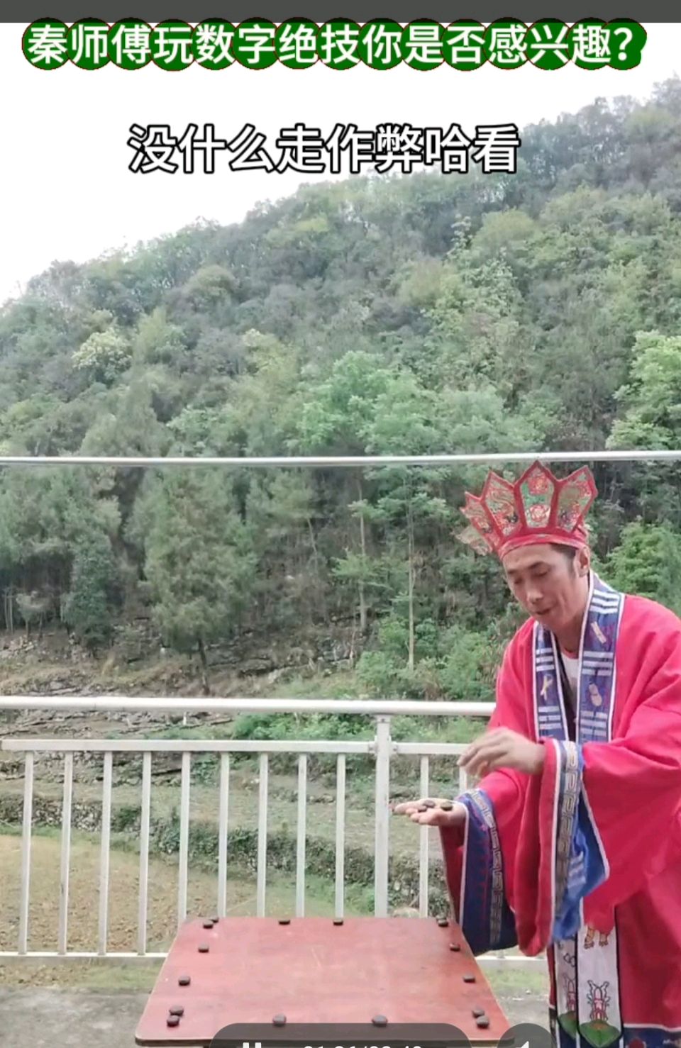兄弟呀兄弟!你往哪里去?你是否知道秦礼军师傅会玩数字小绝技?如果你喜欢玩数字小技,就来找我联系,我也会告诉你,秦师傅家在哪里?现在先来观看秦师傅表演数字小技,他不是装神弄鬼,更不是玩骗术作弄人,如果你认为还可以,再去找他认真免费学习,行不行?