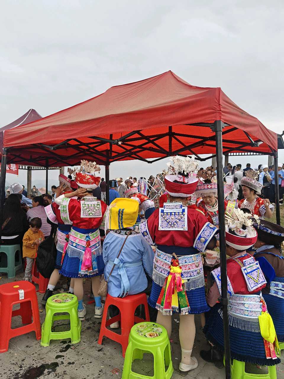 帅哥美女们来啦,大伯大妈也来啦,还有远方的朋友们也来啦,每年都要来一次聚会欢度苗族四月八。有的人天没开始亮就从家里出发,有的帅哥开着轿车就来了,想来这里找个心上人吧?有的姑娘带着对生活的美好追求也来啦,可能是想跳一跳芦笙歌舞吧?有的大伯大叔也来了,可能是想来喝酒划拳打码?有的老妈妈也来啦,也许因为想吃一碗糯米粑粑?