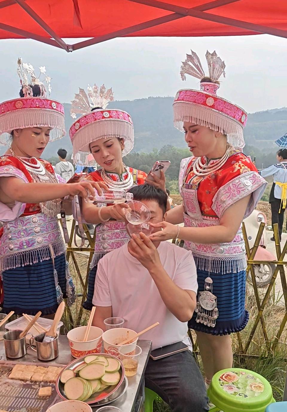 我的天呀!这种“高山流水”敬酒仪式感觉是多么高雅,帅哥就是不喝酒都想来体验一下,感受一下生活的美好与姑娘的热情啊!看来酒不醉人人自醉啦,不醉不回家,不醉怎么有机会牵手闯天涯?好吧!干脆来个一醉方休吧!