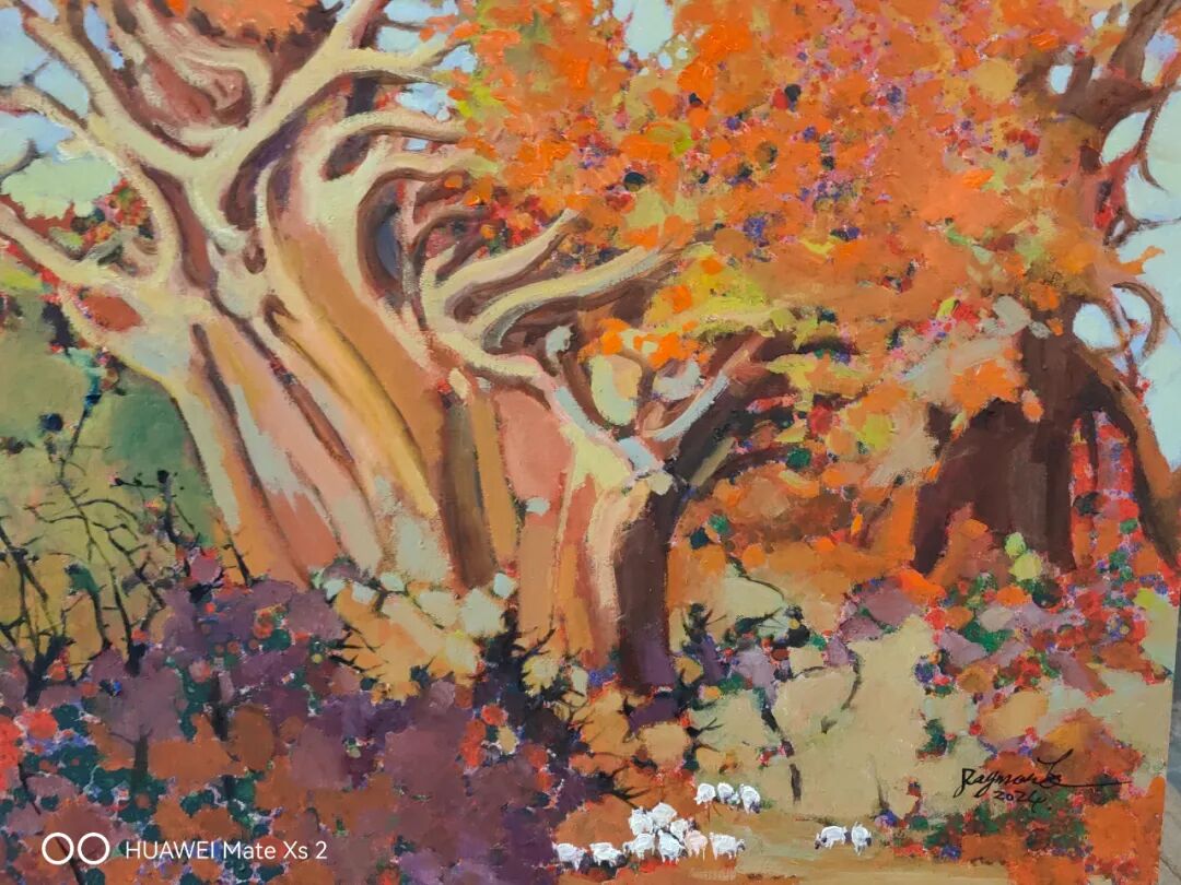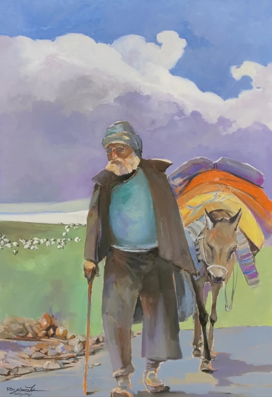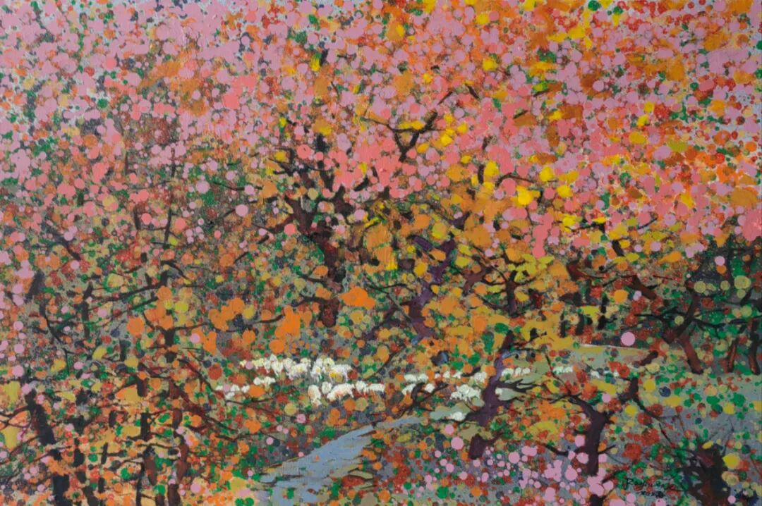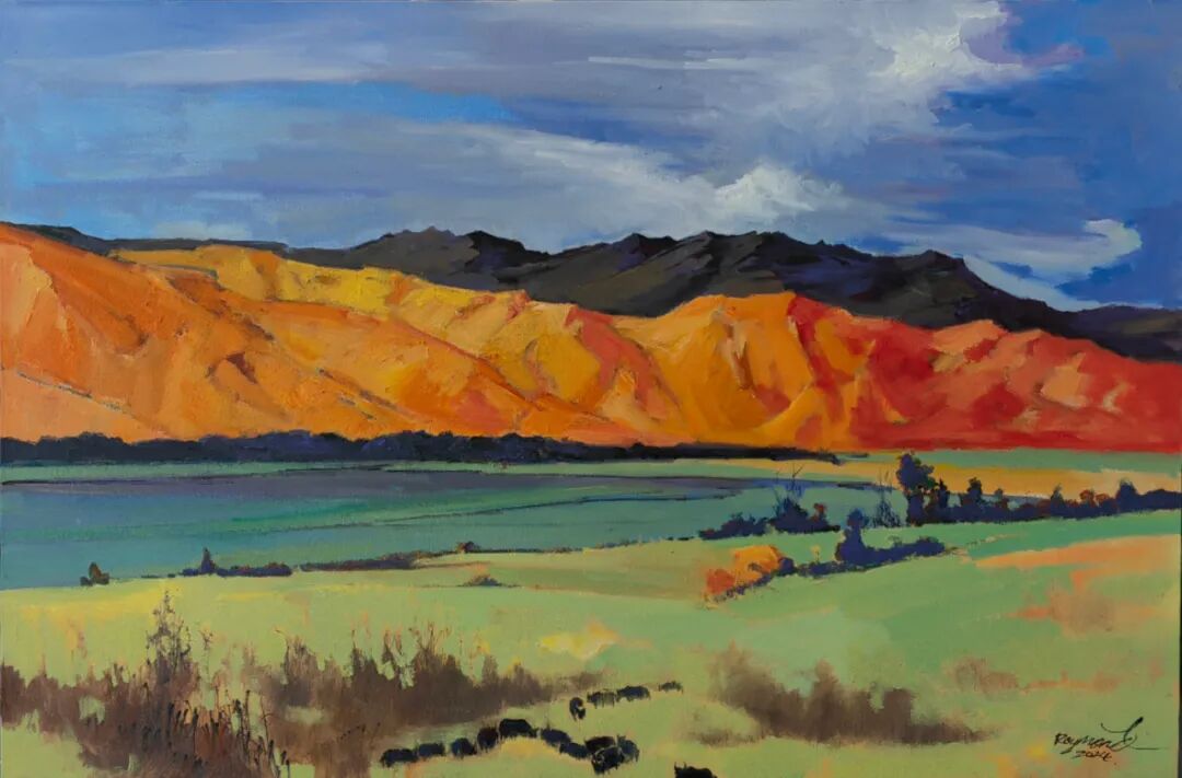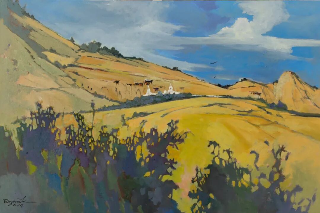 优秀的油画,必然是基于技法的精湛。看罗文先生的画,可见他是尤善于运用刮刀与画笔,两者交替间,在堆叠的色彩中彰显出层次之分明,又能同时塑造出河西走廊、青海环线的沧桑与斑驳。色彩方面,显然也是保留了一些印象派的光线结构,但不是对写实的完全复刻,而是以块状肌理组构整体,在明晦之间藏匿边缘,是谓自有一派美学意境。