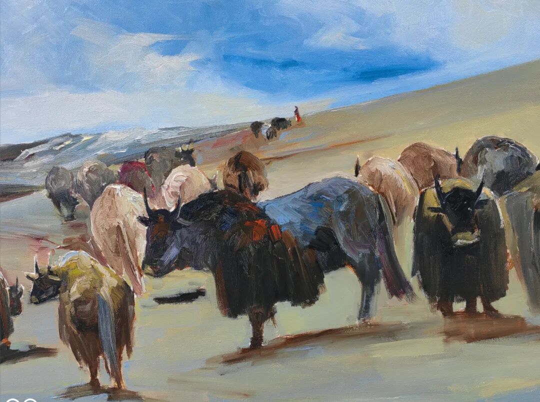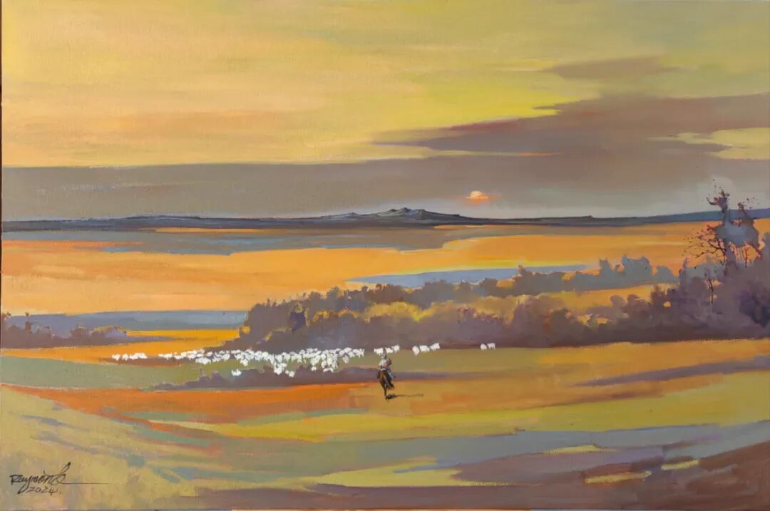 在当代油画艺术界内,罗文正以其深厚的写生功底和独特的艺术视角,努力成为用画笔诠释自然之美的践行者。这位科班出身的实力派画家,自从艺以来,始终都是秉持着"行千里路"的创作理念,从而在苍茫天地间探寻着自然美的真谛。正如他近期创作的河西走廊系列,画中不仅是完美捕捉到了地域的文化基因,更是能通过油彩的厚重肌理与多变的笔触效果,来将大西北的雄浑气韵尽皆呈现于画布之上。