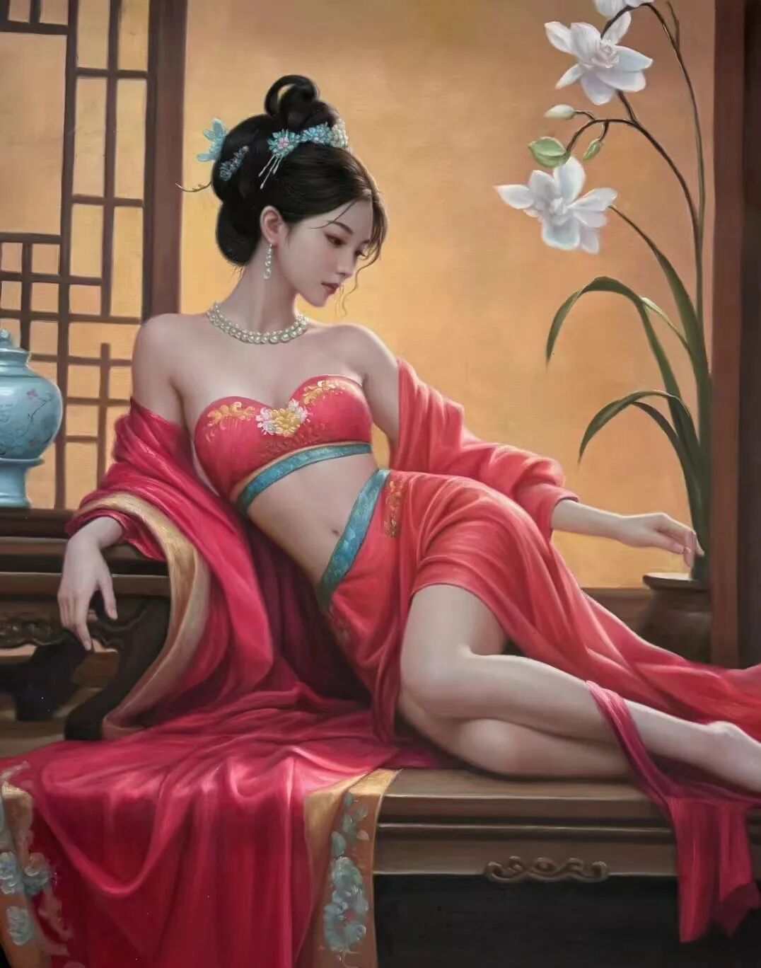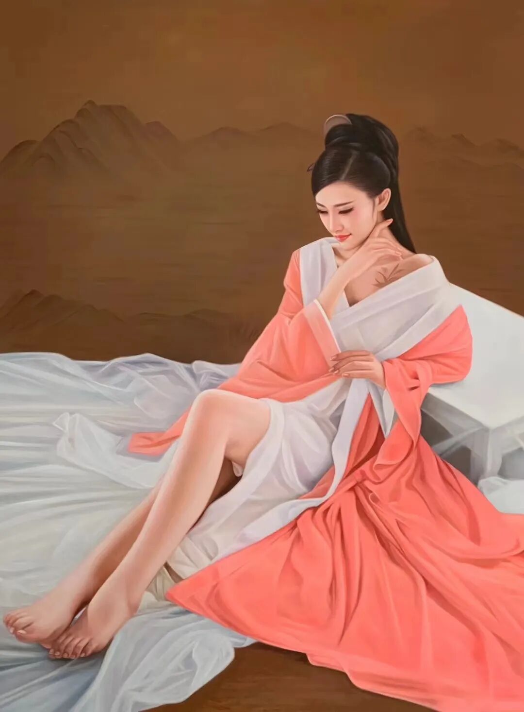 女性之美,始终是周曦先生油画创作中最动人的艺术主题。无论是身着旗袍的东方淑女,还是沐浴阳光的知性女性,亦或是纯净质朴的藏族姑娘,这些各具特色的女性形象,在他的笔下都是被赋予了独特的美。他以敏锐的观察力和深厚的艺术修养,将女性内在的优雅、智慧与坚韧完美呈现。让观者在欣赏这些作品时,不仅能感受到视觉上的审美愉悦,更是能体会到真、善、美的精神共鸣。他在画笔中,思考着女性美的深度,又能通过整幅作品,去承载时代所赋予的美学责任。换句话说,周曦先生的油画,已经是充分实现了当代写实油画美学的全部意义。