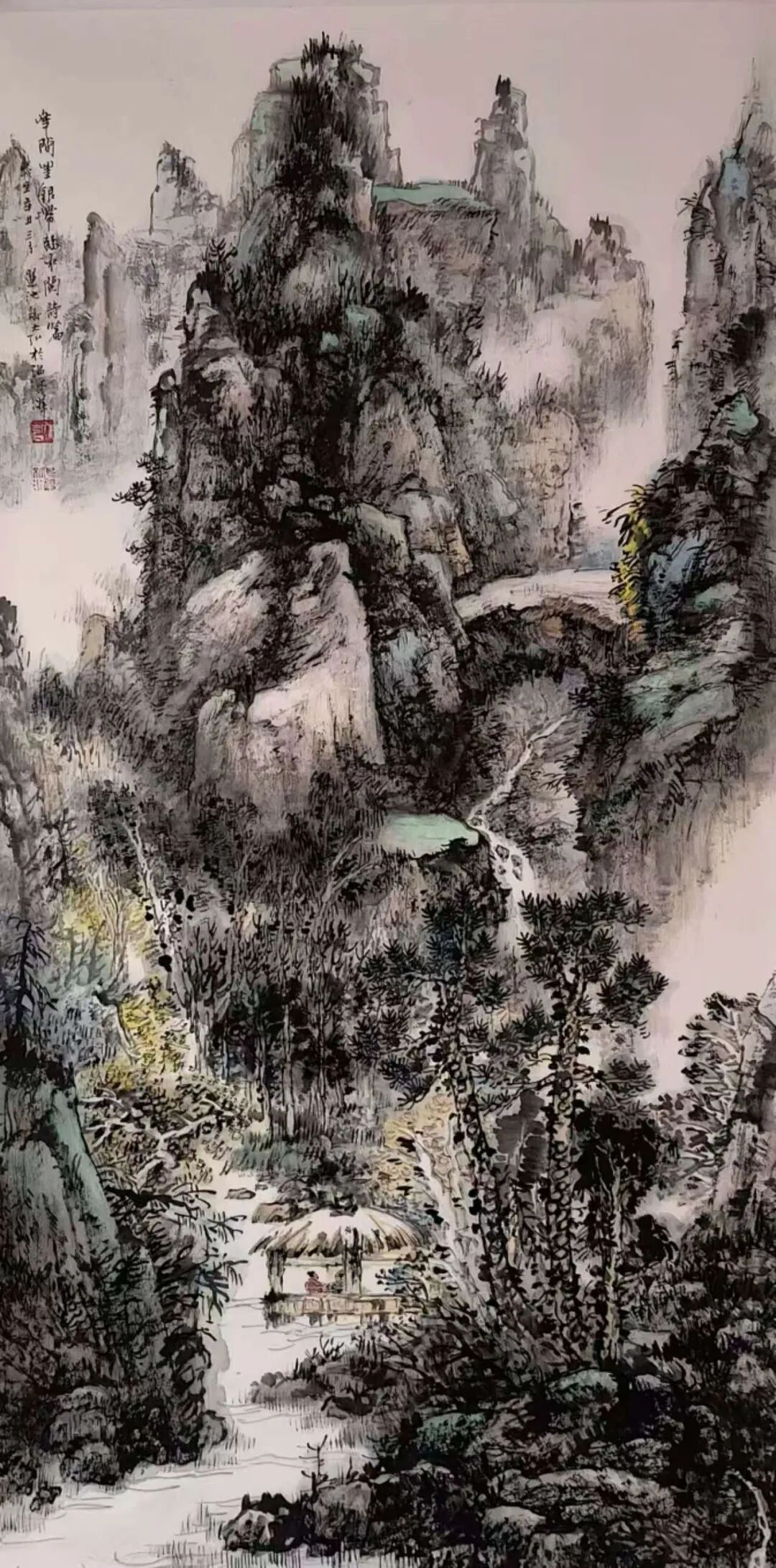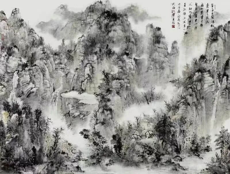 谢大弘先生的画作,是需要静心品味的艺术臻品。远观其笔下山峦,奇峰叠嶂,郁郁苍苍,气势磅礴;近赏则笔墨沉雄,肌理浑厚;至于那些曲径通幽处,更透着"空翠湿人衣"般的空灵意境。正所谓"夏山喜木繁阴人坦坦,秋山明净遥落人肃肃",这般四时变幻的山水格调,在他的作品中皆是能一一寻得。无需赘言,只一眼看去,便就有很美的山水深意在里面,随之生发、随之弥漫。所以相对于笔墨余技的修炼,谢大弘先生则是更在乎“意”的流露,用画笔师造化,用画意抒真情,此间妙谛,真是让人欲辨已忘言。