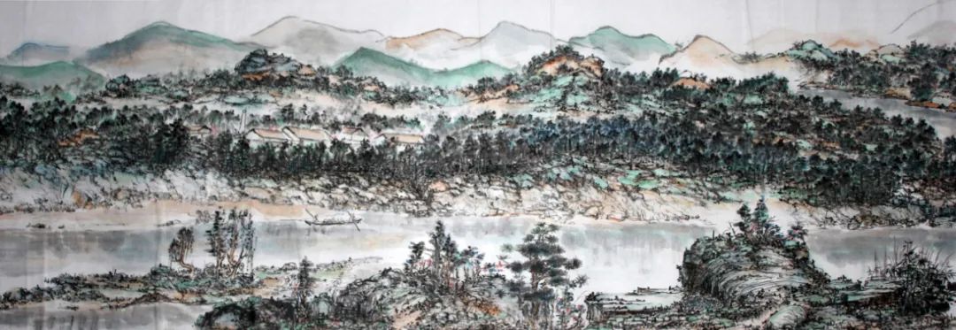 陈伍祥先生对潇湘地域的风景实在是太熟悉了。那氤氲的气象,浮动着湿润的水气,一片朦胧的雨后风采,早已是深深地镌刻在了他的心间。正因如此,他在创作时才会常以写意的手法,来自如地构绘心中景象,最终使画面完美呈现出一种“水光潋滟晴方好,山色空蒙雨亦奇”的诗情妙韵。其意境超尘脱俗,其情景钟灵毓秀,每一处都足以令人魂牵梦绕,观之仿佛亲临于其中,可以在江水亭岸品一盏清茗,烟光云影,涤荡心灵;耳畔又似有湘南小调的悦耳之音,自是空灵中不失人间烟火气,如此澹然天趣,只觉纸上生情! 前有淮海戴时乘,不远数千里担簦学画。今有永州陈伍祥,匪朝伊夕浸淫潇湘,静参妙理。可以说,陈伍祥先生的丹青成功,正是在于他有一颗避俗自乐的寂静心,或垂坐江边清风拂袖,或游步阁楼寄兴抒怀,每一幅画作,都绝不是臆想的空泛之作,而是取景于心,随后应之于手的意化结果。一系列《锦绣潇湘》,构图望远无痕,笔墨清淡秀逸,疏林密遮天光,螺髻近连汉影,又见巉岩峭壁奔竞而出,飞瀑鸣泉潺潺而下,渔船泛舟、阁楼亭宇,皆可使人凄然而动闾里之意,旷然有千里之思!所谓寂然不动,感而遂通,正当如是! 水墨澄怀醉潇湘,人间几度好风光。落落清姿,遥遥淡影,中国人作画,从来都是讲究于意境的感染,正是“重道而不重器”。而陈伍祥先生笔下的写意画,显然就是对此真诠最好的印证。在快节奏的市场经济环境下,人人心气浮躁,只为生活焦虑,又有多少人思游山水却不能及。而陈伍祥先生的画作,恰恰是回应了当代人对“采菊东篱下,悠然见南山”这种精神抚慰的深切渴求。毕竟唯有引人共鸣才能令人沉浸,也唯有共情自然才能蒙味自然,品高者,韵自胜焉!