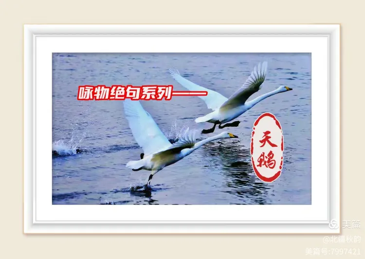 斯天鹅独具魅力若此,令吾感怀顿生。遂以诗为毫,以情为墨,赋《咏天鹅》绝句数章。冀以文字,传天鹅之美韵,达于诸爱生活、向往美好之人也。