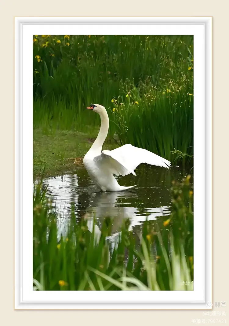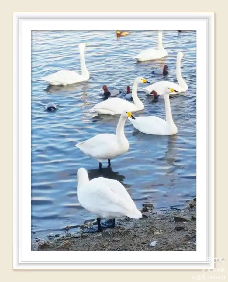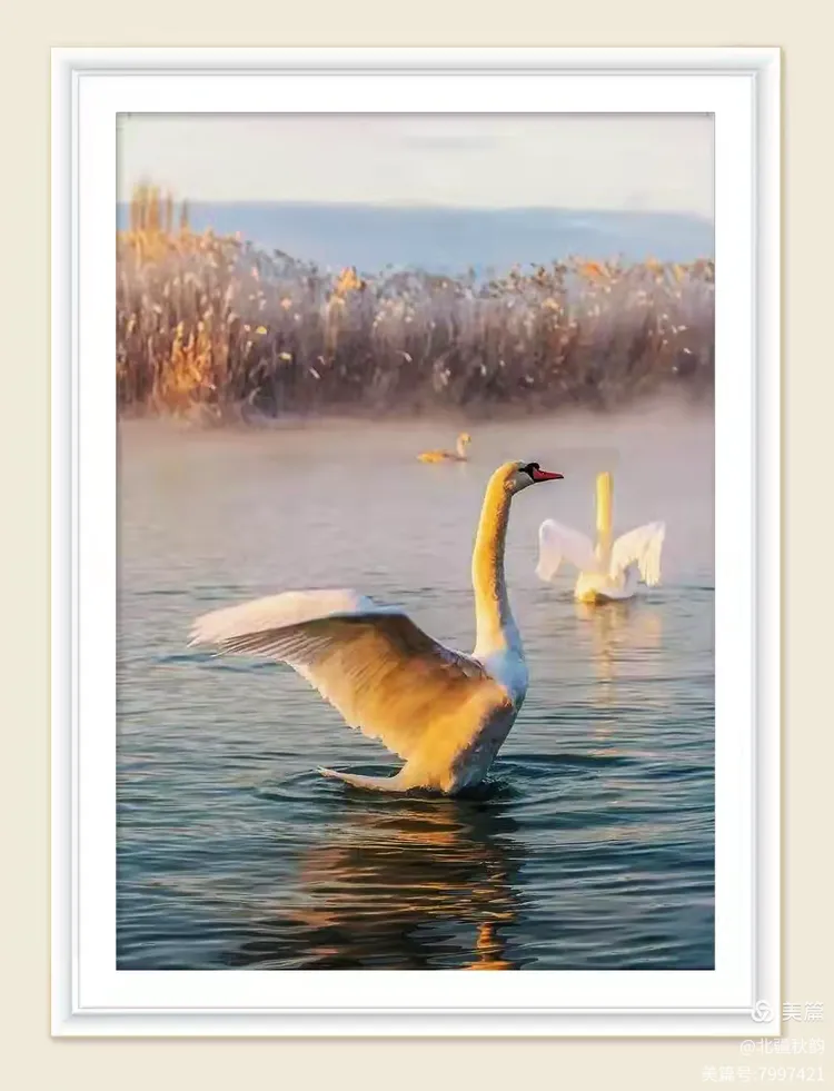 观夫静沼平湖,或浩渺水域,每有天鹅之踪。其若凌波仙子,素羽皑皑,耀于晖光;修颈袅袅,呈以柔曲。行止之间,尽显高贵雍容之态。
