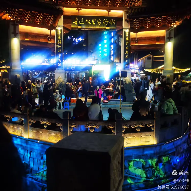 这条街不仅保留了传统风貌,还融入了现代元素,成为展示城市魅力的重要地标。石桥栏杆上的蓝色光带映衬着夜空,更显浪漫迷人。在这里漫步,既能感受到浓郁的文化氛围,也能体验到都市生活的繁华与活力。