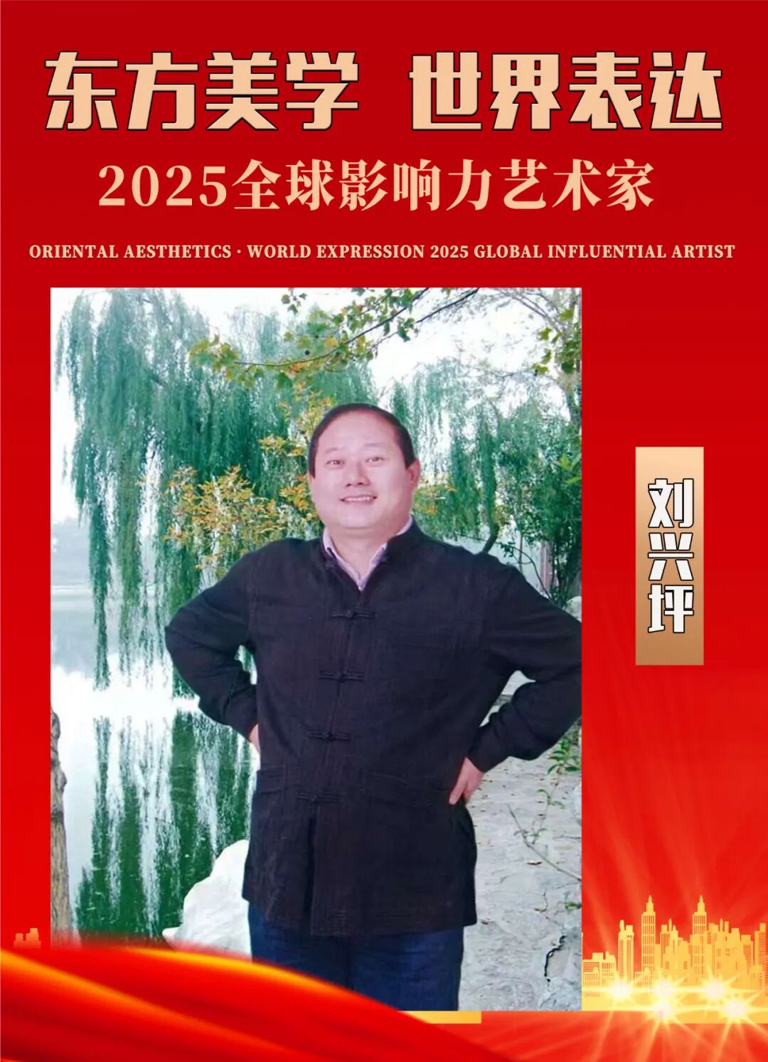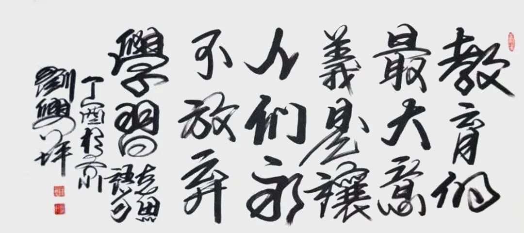 刘兴坪先生作为爱国英才,以卓越艺术家和优秀的社会活动家的崇高精神、强烈责任感和博大胸怀,认真贯彻执行党和政府的大政方针,遵循“百花齐放、推陈出新”的文艺方针,投身于书法艺术事业,长期从事书法艺术研究、创作和推广,“因义生情,由情赋形”,书法艺术造诣高深,臻于炉火纯青的境界,在我国书法艺术领域独树一帜,蜚声海内外,树立起成功人士事业的丰碑。先生坚持“优秀艺术服务于人民”,笔走龙蛇,仁风广布,弘扬优秀的中华文明,为社会主义现代化建设提供精神动力,为人民群众提供优秀的精神食粮,赢得良好的社会声誉,建立起艺术家辉煌的信誉大厦。刘兴坪先生的名字和爱国报国宣言以将与万里长城“爱国功德榜"长存,流芳百代,激励亿万华夏子孙为祖国繁荣富强而奋斗,先生为本人家族赢得了至高无上的荣誉,受到族人爱戴。