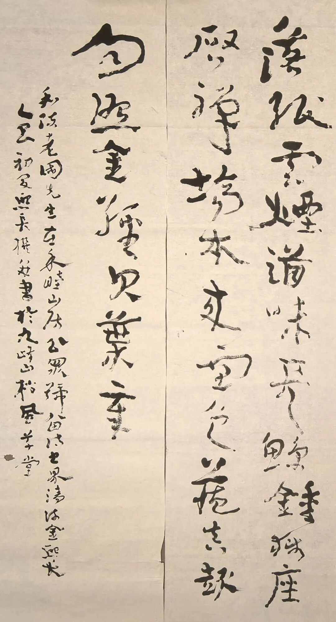 “清者,上清而真阳”,他的作品宛如一泓清泉,洗尽世俗铅华。在其笔下,线条萧疏空灵,每一笔都似带着超脱尘世的仙气 。如自撰联“一室琴声邀明月,半瓯清茗洗俗尘”,整幅作品简约透彻,观之仿若能听到金玉振响,心灵也随之得到涤荡。这种“清”不仅是形式上的简洁,更是一种精神上的纯净,摒弃了世俗的功名利禄之心,回归到书法艺术的本真。