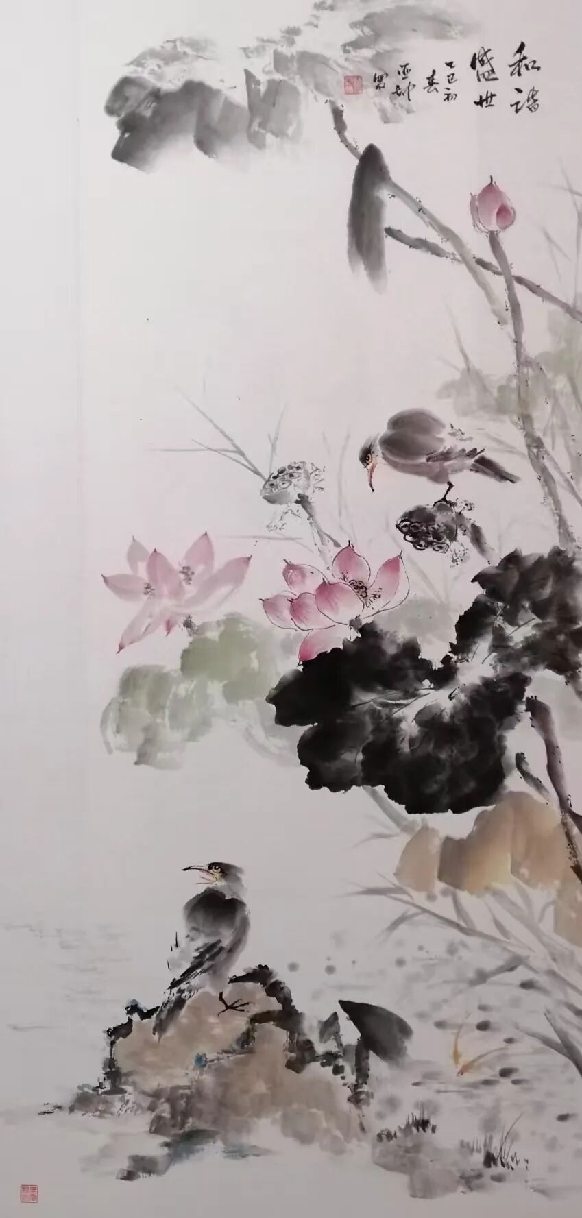其作品以传统笔墨为根基,融合当代审美意趣,在构图经营、笔墨运用和意境营造方面独具匠心。尤擅通过酣畅淋漓的写意笔法,展现花鸟世界的生机与神韵,作品既具传统文人画的笔墨情趣,又富有时代精神。